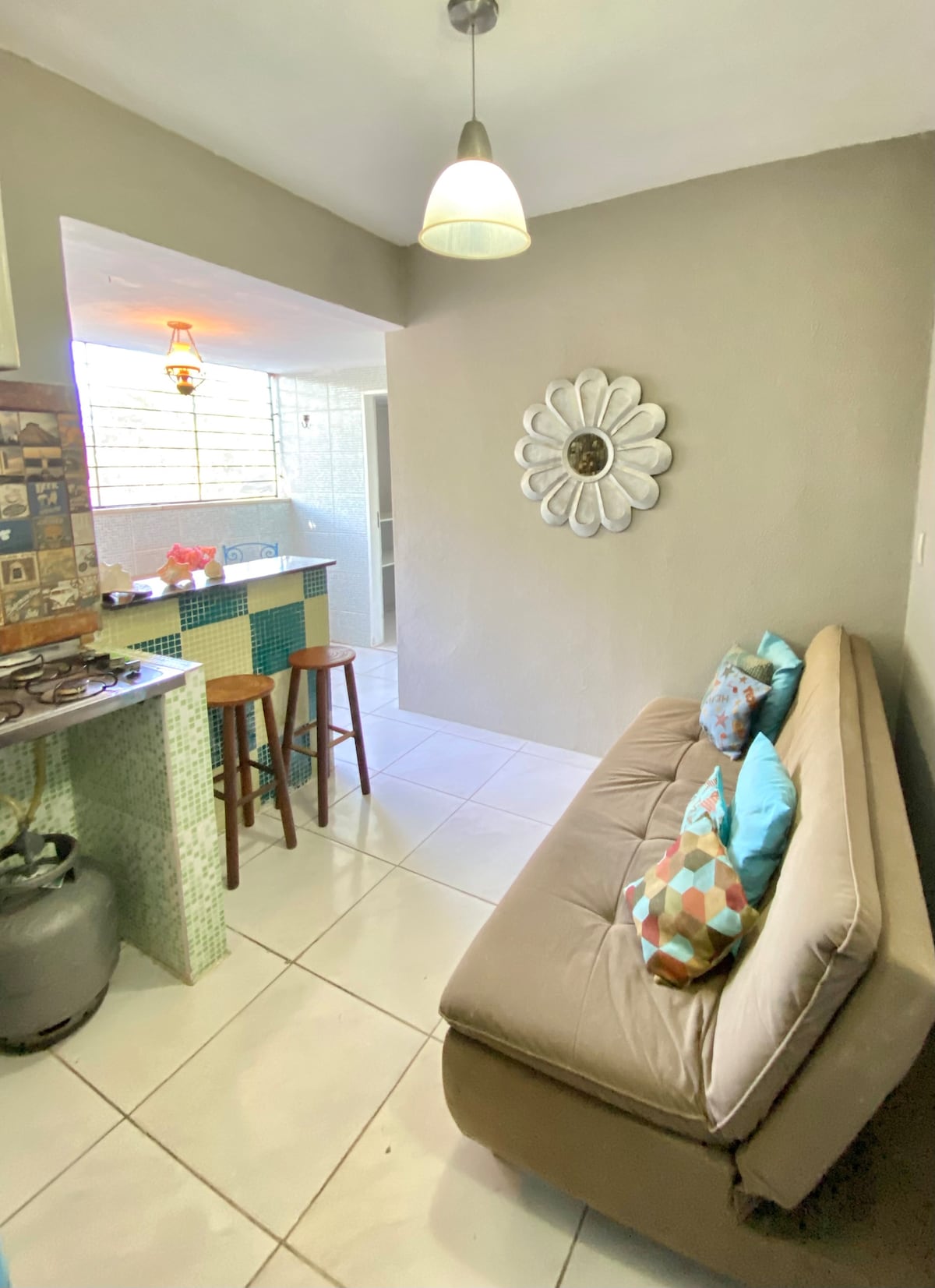 Local descolado com quarto privativo,ventilador, cama, banheiro privativo e cozinha com utensílios básicos (talheres, panelas, pratos, liquidificador). Localizado à três quadras da praia, próximo às melhores barracas de praia (Vira Verão e Crocobeach). Estacionamento interno. Obs. Tem opçao de ar condicionado, com taxa de 30 reais o dia.