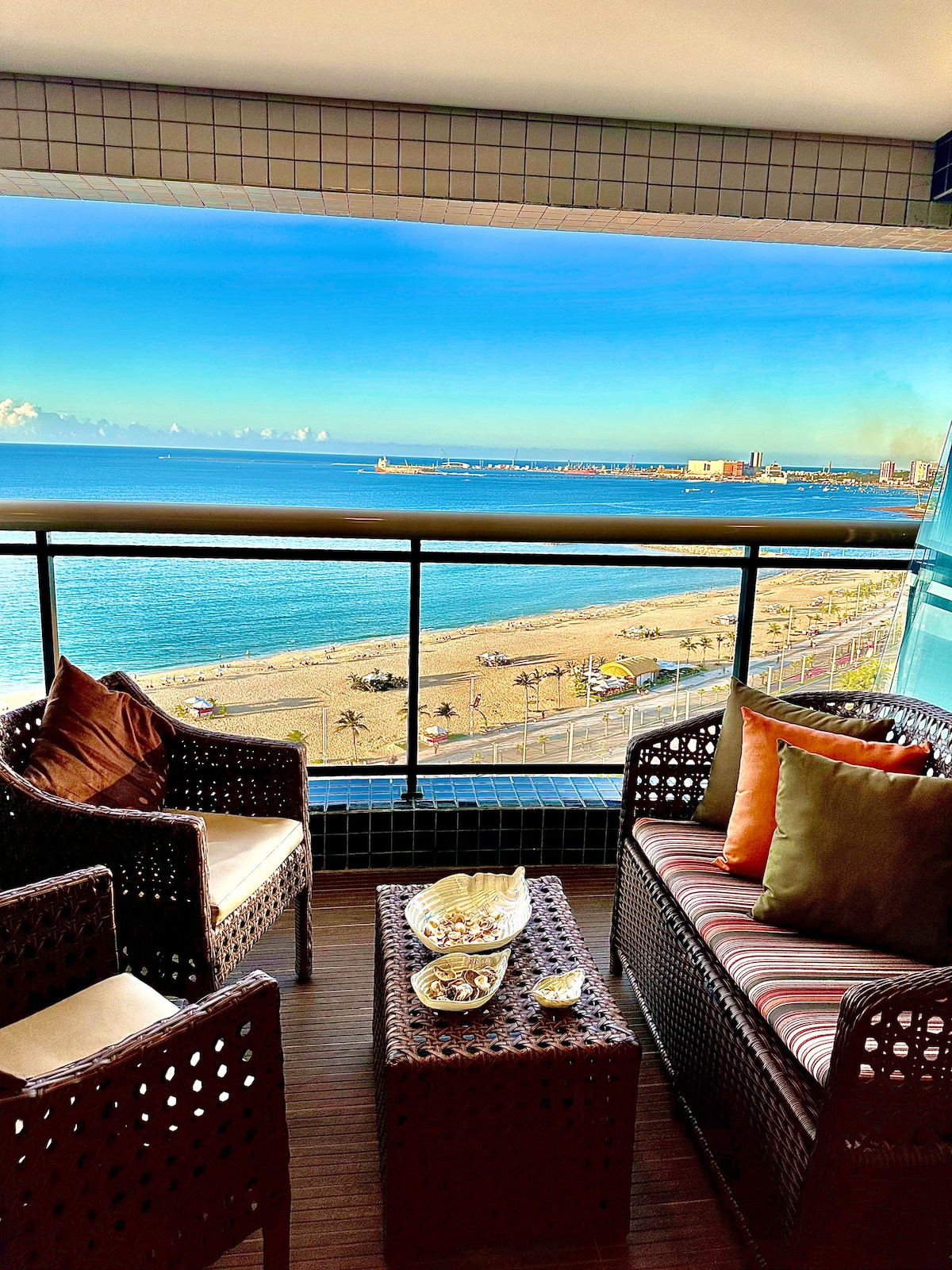 Lindo apartamento, todo climatizado, planejado para oferecer uma experiência de hospedagem super agradável! A varanda ampla e aconchegante nos brinda com uma relaxante vista mar lateral! E o condomínio ainda oferece a infraestrutura de lazer mais completa da orla da capital cearense com piscina coberta e descoberta, academia, squash, sauna, jacuzzi, salão de jogos e playground.
