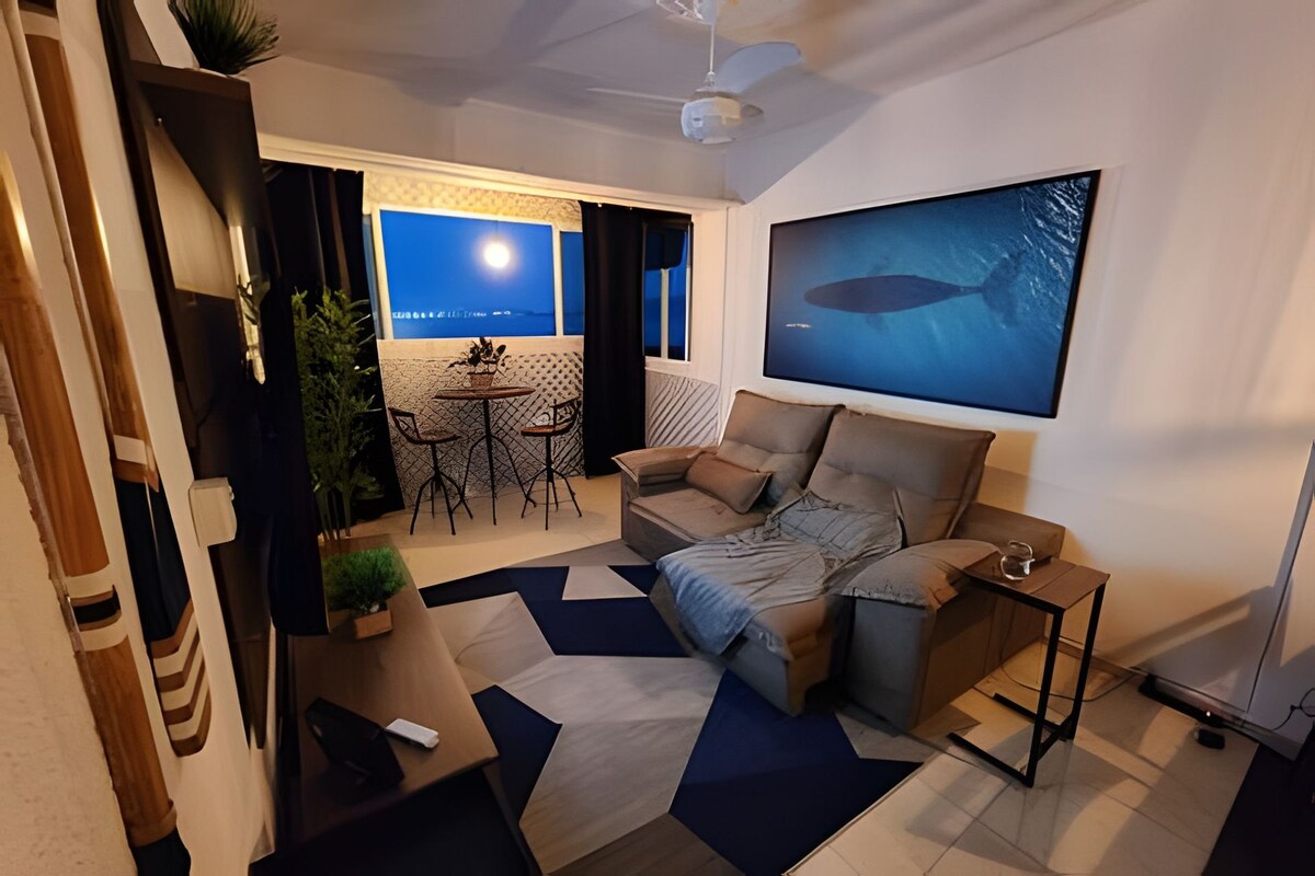 Pé na areia, frente total para o mar com varanda: som das ondas, pássaros, paisagem de tirar o fôlego com vista espetacular. Esse é um apartamento da grife "The Perfect View" -- sempre vistas perfeitas com estilo. A varanda é integrada com uma ampla sala, com vista para o mar. Decorado com design exclusivo oferecendo experiencia única para relaxar ou trabalhar à distância -wi-fi de alta velocidade , ar condic. em todos os cômodos, smart TVs e home office. Uma vaga na garagem com manobrista.