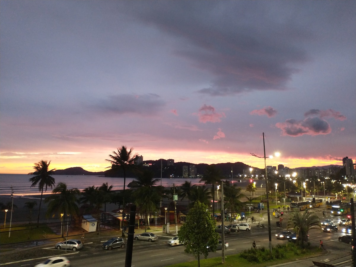 Kitnet em Santos. A visão para o mar e areia é total, podendo contemplar a Ilha Urubuqueçaba, ilha Porchat e um por do sol inesquecível. Próximo de muitos comércios; há galeria ao lado com restaurantes, mercearia, lavanderia etc. O Habib's fica ao lado do prédio. Bem próximo está o Emissário submarino, local com pista de skate, bike e playground. Estação do vlt(trem que liga a cidade) é próxima e ponto de ônibus também. Diversas companhias de ônibus de viagem passam em frente ao apartamento.