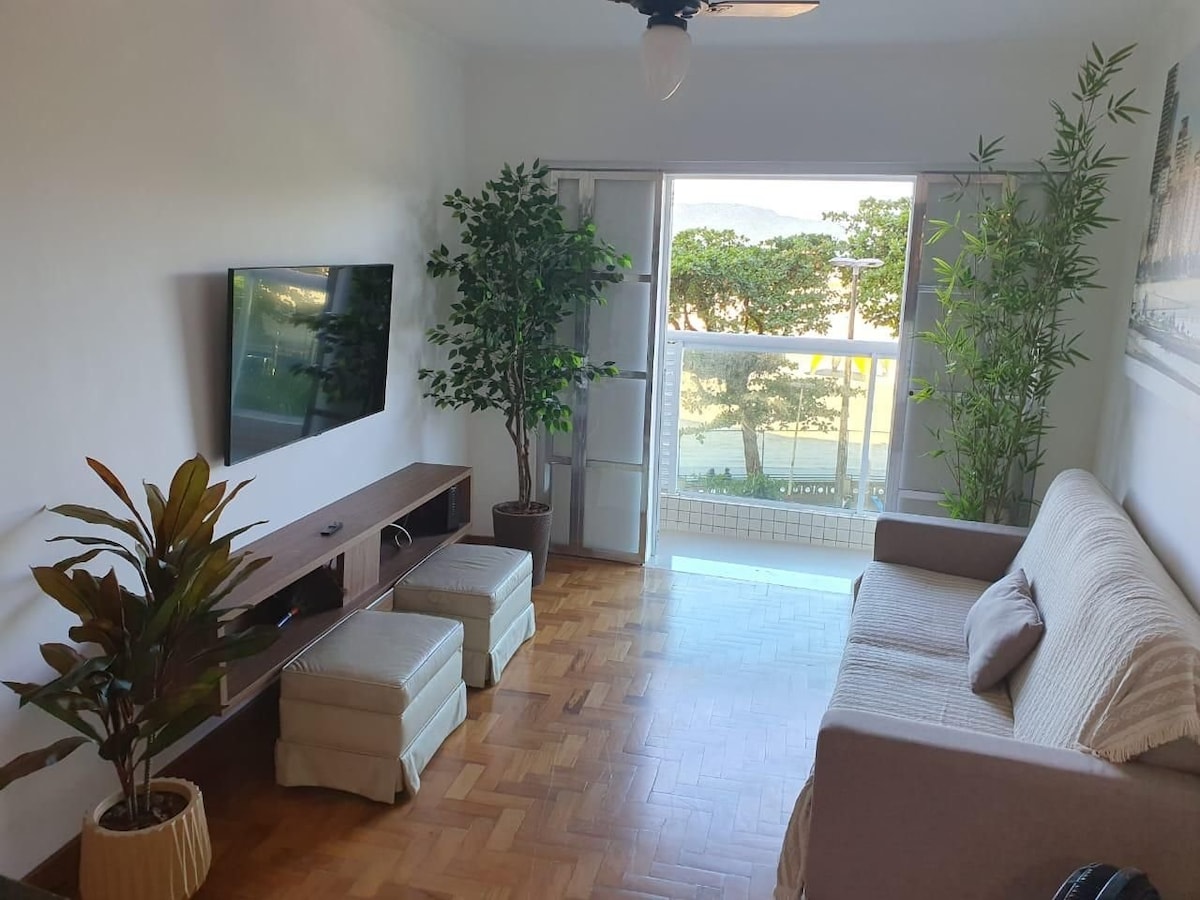 Lindo apartamento localizado na melhor região de São Vicente com vista ao mar e pé na areia. Oferecemos vaga em estacionamento próximo ao local. Próximo a restaurantes, bares, farmácias, supermercados e as principais praias da cidade. O Ape dispõe de ar condicionado, Wi-Fi de 350Mb, TV 55” com canais abertos e Netflix, enxoval completo, cama e sofá cama confortáveis, cozinha completa, além de uma mesa de jantar com vista apaixonante. Diz aí se não é uma delícia para passar um tempinho?