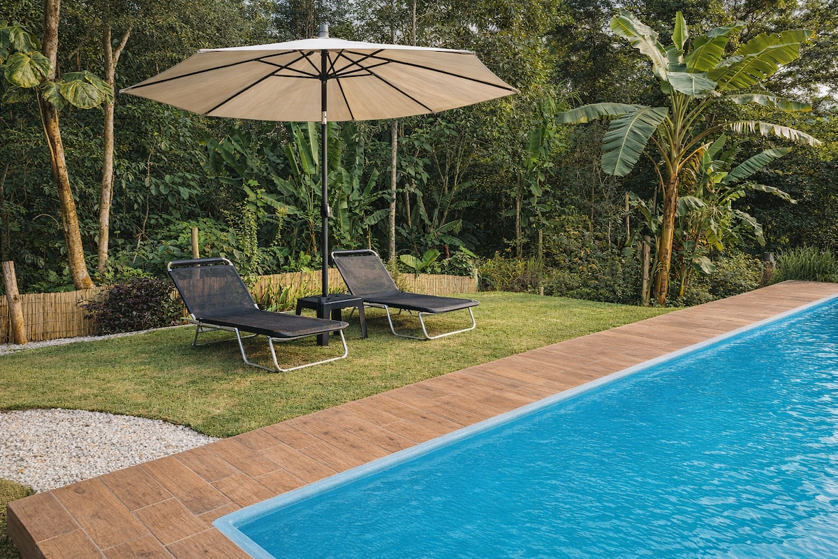 阁楼式公寓,配备泳池、空调、烧烤设施、休闲区和自然环境