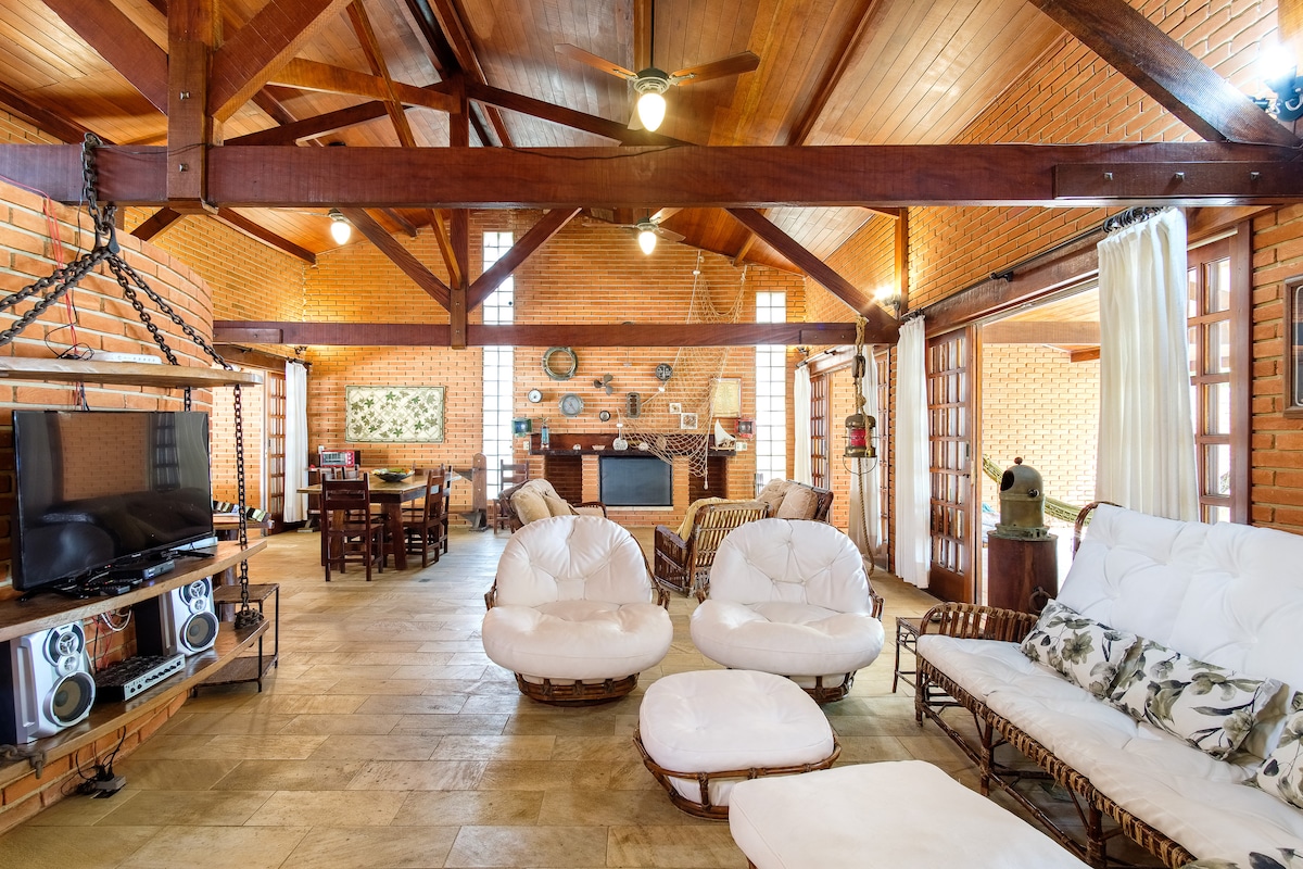 Em condomínio fechado, esta casa foi feita por um arquiteto muito especial chamado Dedé. É uma casa excelente para amigos e família. Perfeita para quem gosta de cozinhar, ter conforto e admirar uma das paisagens mais bonitas do mundo! Eu passei muitos dos meus melhores momentos da minha vida aqui. Ela tem uma poesia só dela. Precisa vivenciar para sentir o que tento descrever aqui. Sou suspeita, eu sei, mas recomendo a experiência. A casa também é cenário do livro O Encantador de Pessoas. =)