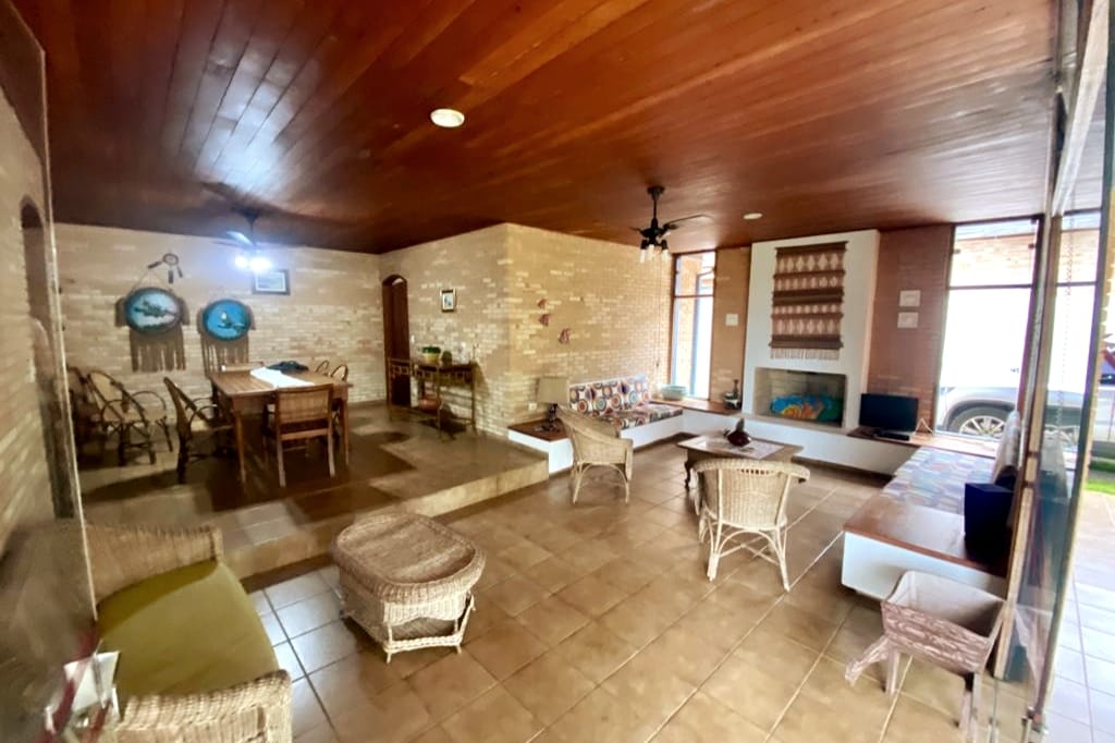 A casa é na Praia da Fortaleza, de frente para o mar, pé na areia, em um terreno muito grande, cercado de muito verde, árvores e muita privacidade em uma linda casa de alto padrão com todo conforto. É uma casa térrea, linda, e a área externa é um verdadeiro paraíso. A casa é perfeita para casais e famílias (com crianças).