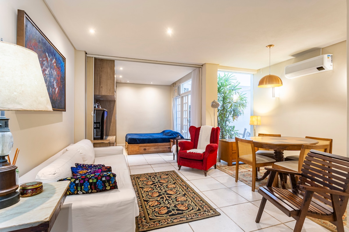 It's a loft located in the best neighborhood in Rio and projected by the architecture office Casa Cururu. Perfect for 2 people but we can host until 4 people on the sofa bed . Everything you need is on your "doorstep", metro station, bars, best restaurants, malls, beach… but at the same time very bucolic and calm. The perfect match, "chill n joy". Ps.: We provide parking lot inside the building. Please send the plate, color and type of car (vallet).