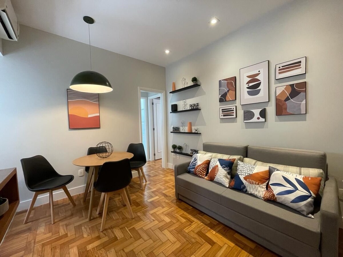 Apartamento foi todo reformado, decoração impecável, muito estilo e conforto para aproveitar o que tem melhor no Rio de Janeiro. O apartamento é um quarto e sala de 60 M², todo equipado, com Wi-Fi de alta velocidade, Tv smart, sofá-cama, perfeito para quem quer trabalhar de home office. Prédio residencial na melhor parte do Leblon. Apenas a 270 metros do Shopping Leblon, 260 metros do Metrô e 350 metros da praia.
