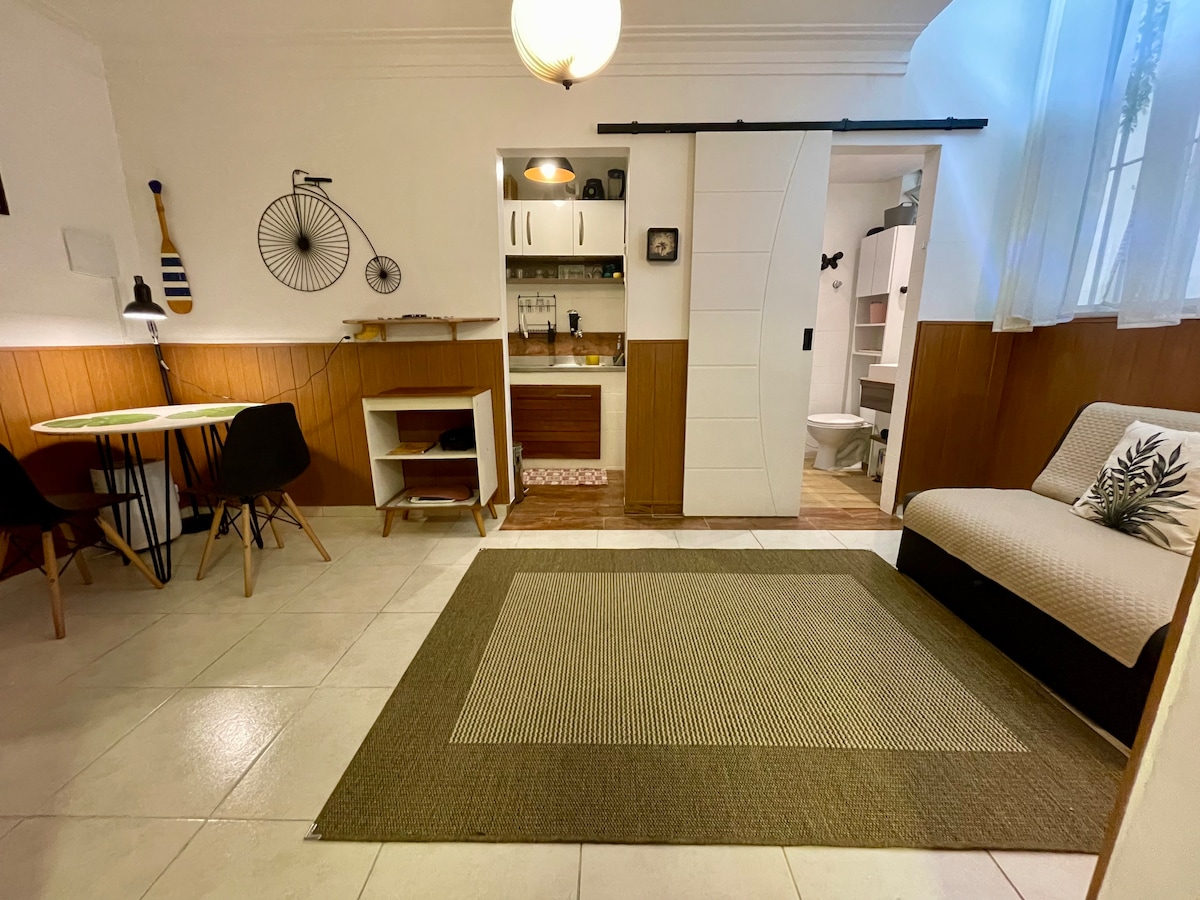 Cozy bedroom and living room at Leme, recently renovated, quiet and comfortable. Between the sea and the mountain, where Copacabana begins and a few meters from the beach, the building is in a residential street and has a doorman 24 hours. Well located, the neighborhood offers varied local commerce, excellent restaurants and public transportation. Ideal for both leisure and business travelers.