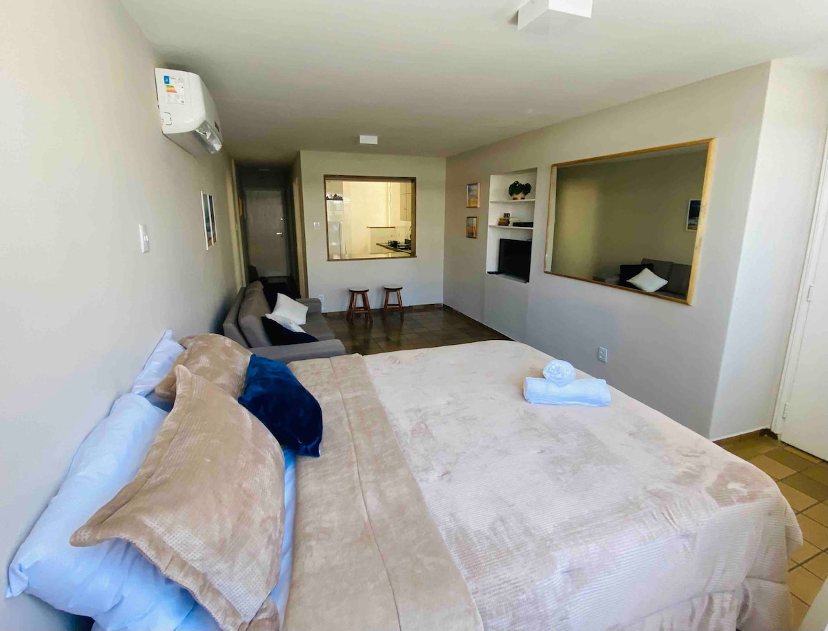 - Flat com vista fantástica; - Limpeza diária sem custo adicional - Apartamento recém reformado e com mobília nova; - Condomínio com portaria 24h/7d (você é bem vindo a qualquer horário), restaurante, piscina, sauna e academia; - Fechadura por senha; - Smart TV e ar condicionado split na sala e no quarto; - WiFi; - Acomoda até 4 pessoas (01 cama de casal +02 colchões) - Cozinha completa, inclusive purificador com água gelada - 350 metros da praia - Local para guardar as malas