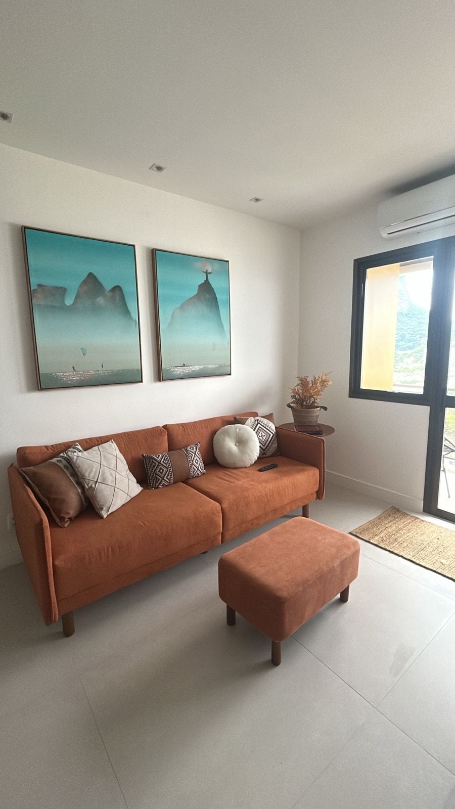 50 m² apartment in Arpoador, just a 2-minute walk from Copacabana, Ipanema, and Arpoador beaches. Located in a new building with a pool, jacuzzi, sauna, gym, free covered parking, and 24-hour concierge. Very safe area in a prime location. Fast fiber internet (430 Mbps), dedicated workspace, Smart TV with Netflix, and a comfortable queen-size bed. Ideal for couples, solo travelers, or families. Designed by two artists who love Rio, the space blends creativity, warmth, and thoughtful design.