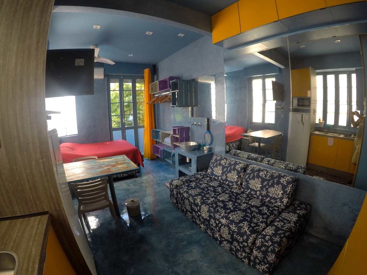 Renovated and elegantly furnished apartment; quiet backyard 1 block from Copacabana beach (Posto 5), 2 air conditioners, electronic locks, 24-hour doorman. Plenty of shops available such as grocery stores, pharmacies, supermarkets, restaurants, gym, banks all located less than 2 blocks away. Apartment located 15 min away from Ipanema and Lagoa (walking on foot). It has 1 double bed (bedroom) and 1 sofa bed (living room) big and comfortable.