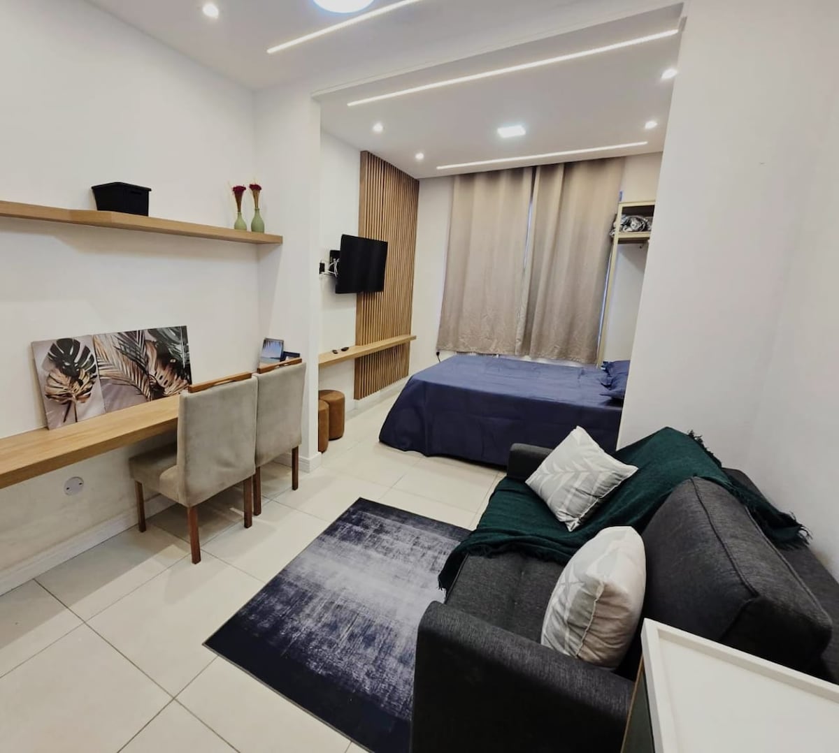 Charming and silent 25m2 studio, fully equipped, with high standard kitchen, bathroom and bedroom, and acoustic window with a 95% reduction of external noise. The studio is fully intelligent and responsive to voice commands (TV, sound, temperature and lighting). Located in the heart of Copacabana beach, our space is also just a few minutes walk from Ipanema beach, supermarkets, subway and a multitude of bars and restaurants, in the best of Rio style!