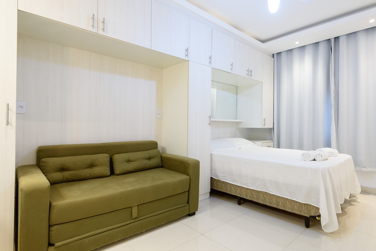 Venha curtir o lifestyle carioca em Copacabana! Studio aconchegante e totalmente reformado, com ar condicionado, workstation e internet de alta velocidade, Smart tv e 03 minutos a pé da praia de Copacabana. Localização privilegiada na quadra da praia, região boêmia com os melhores restaurantes, bares, mercados, farmácias, lojas e apenas 650m da estação de metrô. São 38m² com ambientes independentes, cozinha, banheiro, sala e quarto (cama casal e sofá cama) Tenha uma ótima estadia ! :)