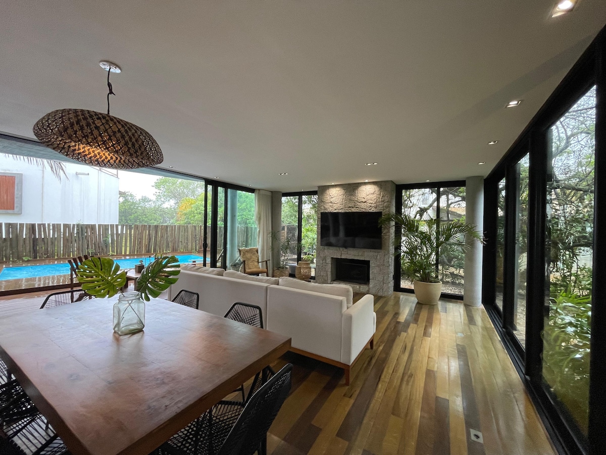 A special place to relax with family and connect with nature, featuring a charming view of the lagoon and the sea in the background. The house combines sophisticated design with rustic elements, creating a cozy and welcoming atmosphere. Large windows integrate the indoor spaces with the surrounding landscape, giving the feeling of being immersed in greenery. A/C in all bedrooms, high-quality bed and bath linens, and a well-equipped kitchen ensure comfort for you and your family during your stay.