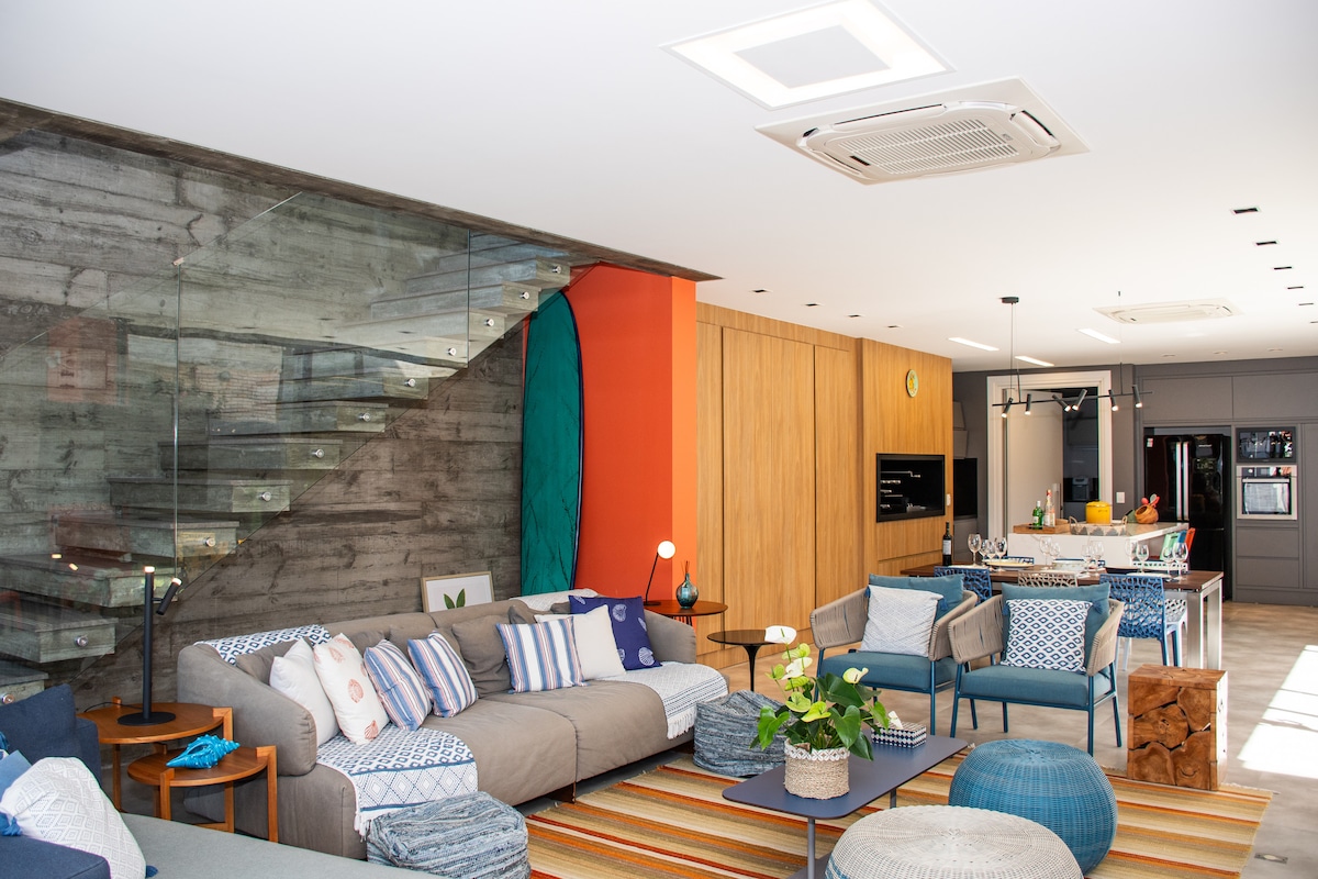 Ubicación inmejorable en Praia do Rosa: a solo 100 m de la playa y 400 m del centrinho. Buda da Lagoa combina vistas espectaculares al mar con detalles de alta calidad. Las casas ofrecen espacios amplios, cocina completa, decks con parrilla, Smart TV, aire acondicionado en todos los cuartos, servicio de limpieza diario y Wi-Fi fibra óptica de 600 Mbps. Ideal para disfrutar con familia o amigos, conectarse con la naturaleza y relajarse sin necesidad de usar el auto.