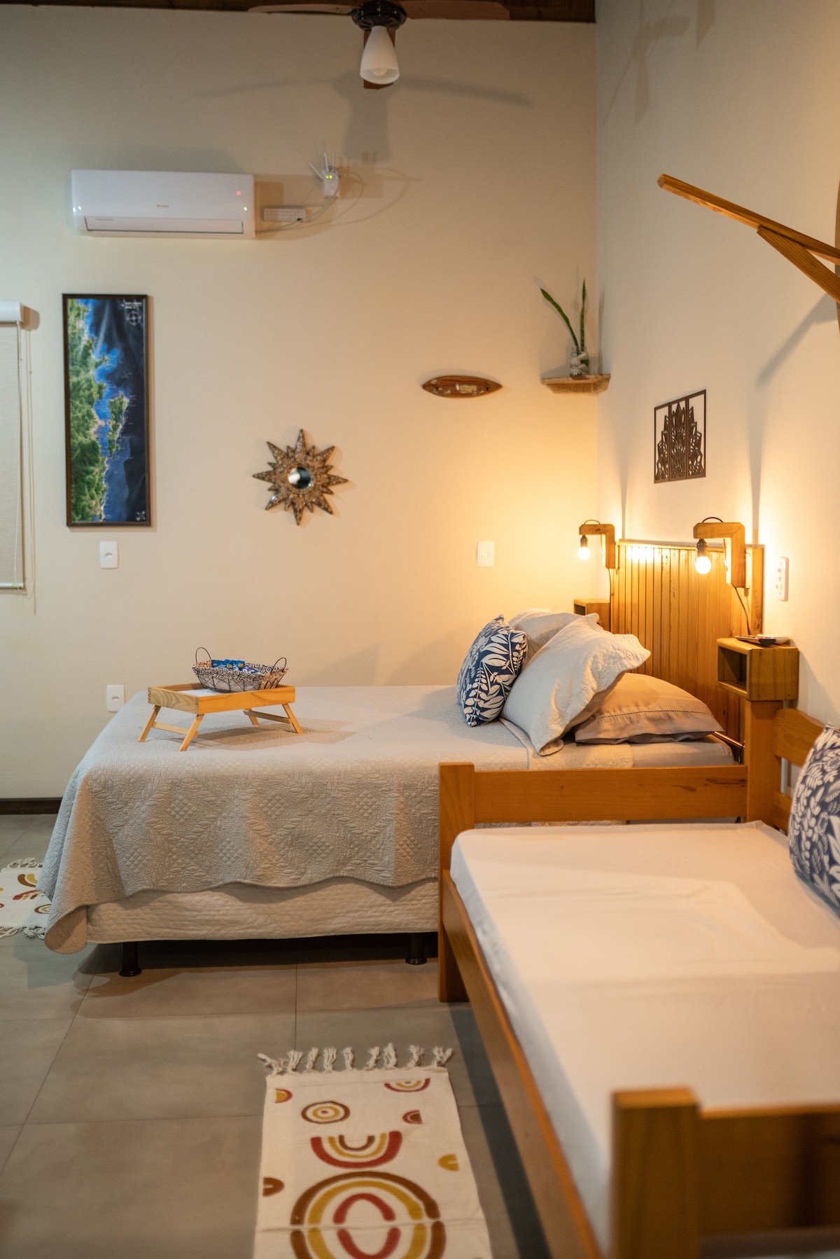 The Despertar Suite, located in Praia do Rosa - Imbituba/SC. A cozy and pleasant space for couples looking for comfort and a unique experience with a beautiful view of the sea and a delicious breakfast. Our space has a structure surrounded by nature, with beach decor, totally relevant to the region. In addition, we have a beautiful jacuzzi with hydro and a luxurious suite at your disposal. Distance to Praia do Rosa: 1.5km (10min);