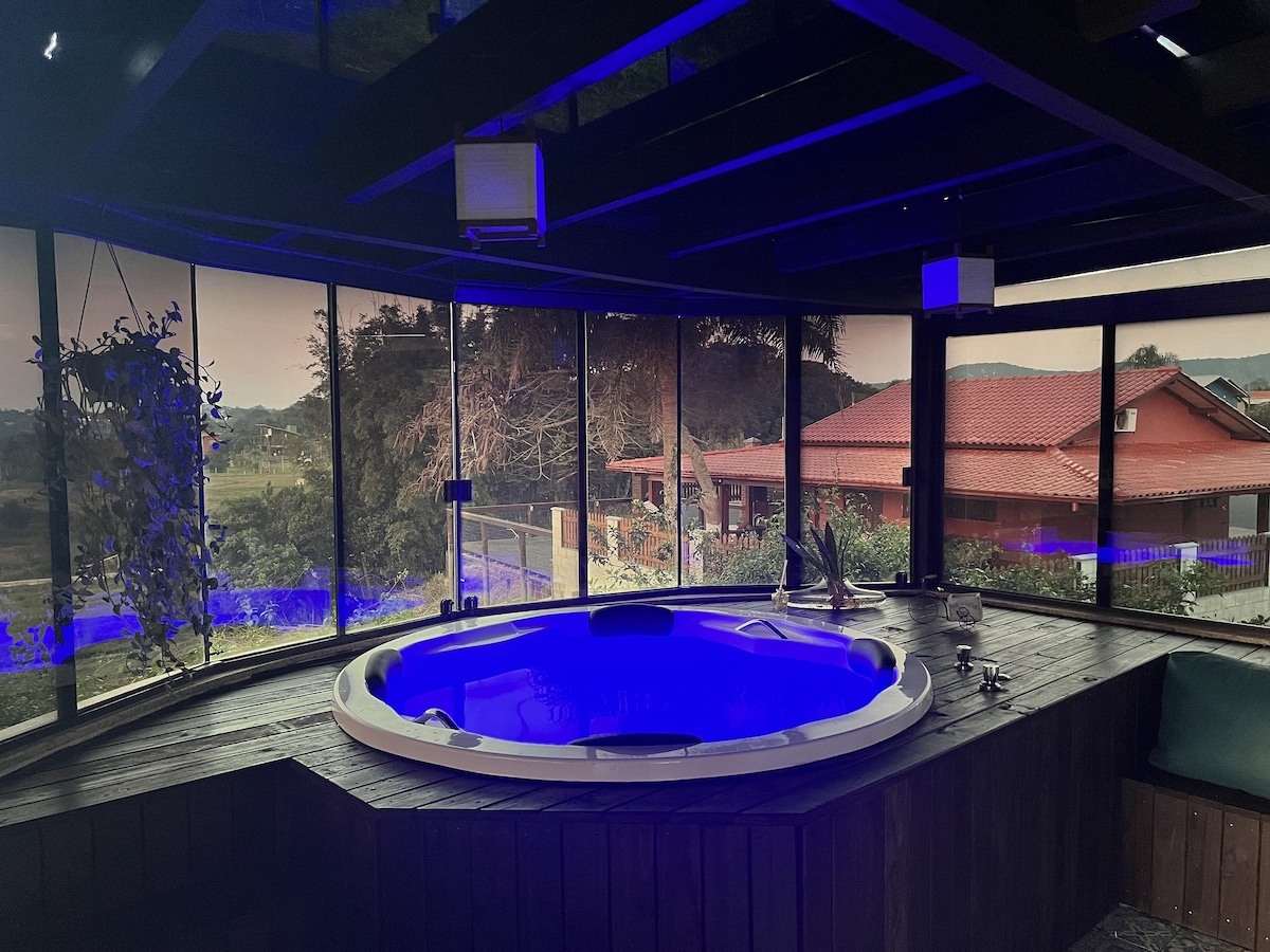 Bem vindos ao domo Galaxy, o primeiro e único domo geodésico de policarbonato do Brasil, na cidade de Imaruí - SC (á 1:30 de Florianópolis). Seu interior dispõe de cozinha completa (com cesta de café da manhã inclusa na diária), banheiro com toalheiro térmico, ar condicionado (quente e frio), Alexa, cama queen com dossel e tela de projeção! Na área externa, um deck com banheira de hidromassagem aquecida, fire-pit e área gourmet com churrasqueira. OBS: aceitamos pets de pequeno e médio porte.