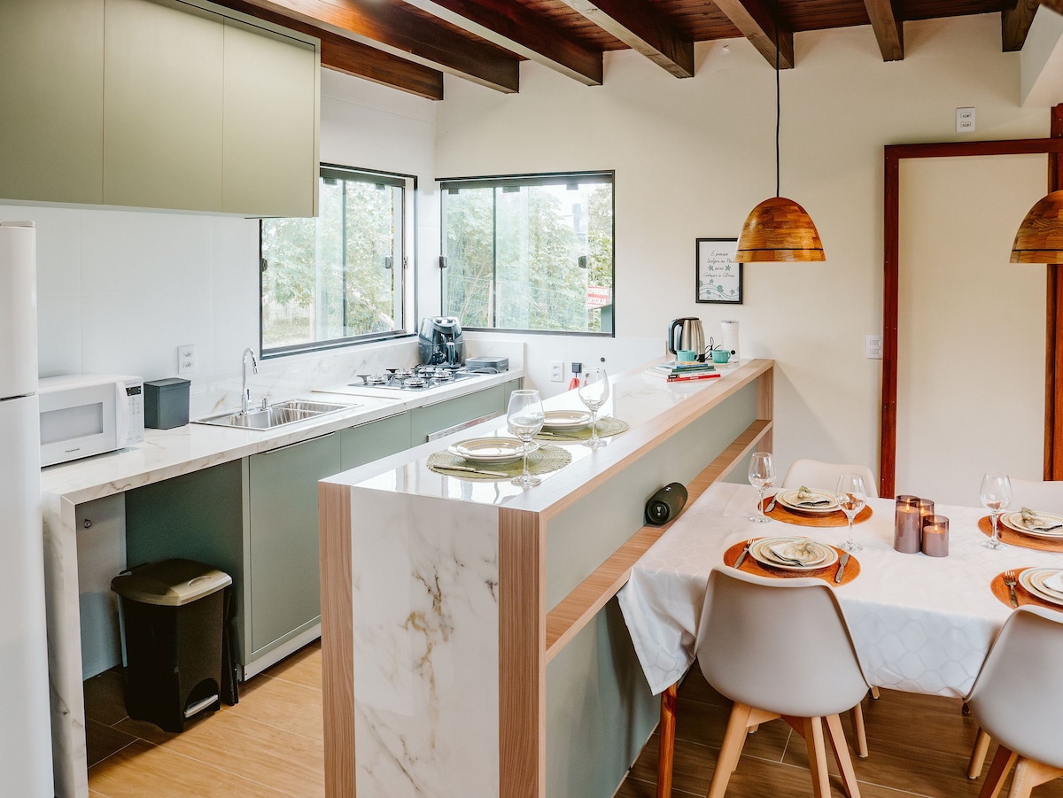 "Venha para o Refúgio do Ermitão, um oásis exclusivo localizado no Morro da Ferrugem, cercado por um bosque tranquilo e com vista deslumbrante para o pôr do sol na Lagoa. Perfeito para quem busca tranquilidade, longe do movimento, mas perto o suficiente da praia e do centrinho(apenas 600 metros). Aproveite o som das árvores balançando e o canto dos pássaros em um ambiente tranquilo".Desfrute de comodidades modernas. - Ar condicionado - TV a cabo - Internet de fibra de 600MB - Ofurô aquecido