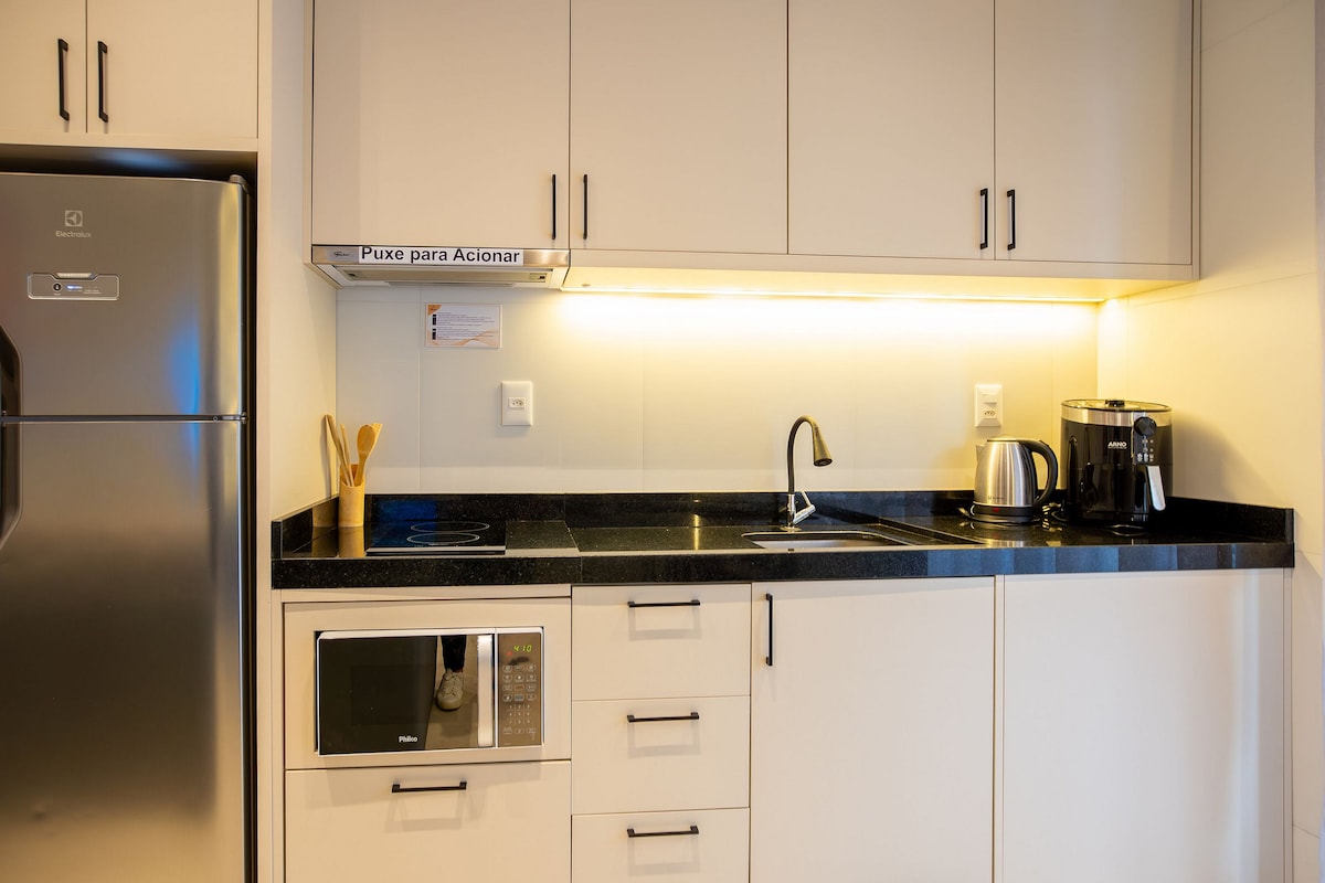 Live a high-end experience steps from the sea! This Studio was designed for your maximum comfort, with a queen bed, sofa bed, air conditioning, and a full kitchen. The gourmet area with a private barbecue grill invites you to unique moments, while the rooftop pool, with a panoramic sea view, offers an unforgettable experience. Enjoy the strategic location, close to restaurants and shops, and the convenience of a covered parking space. Book your stay now!
