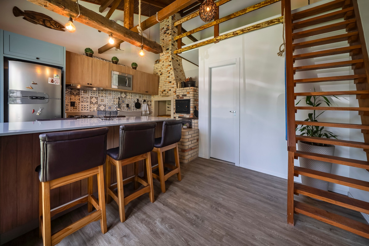 Nosso Refúgio foi pensado para casais que desejam desacelerar; Banheira de imersão aquecida,roupas de cama e banho, copa equipada; Iluminação aconchegante e decoração elegante Privacidade total em um ambiente charmoso Seja para comemorar uma data especial, curtir o Estacionamento com câmera Ar-condicionado Wi-Fi Smart Tv - Netflix Roupas de cama e banho Opcional de café da manhã 4 minutos a pé da praia do Mariscal Bombinhas, próximo a restaurantes e mercado.
