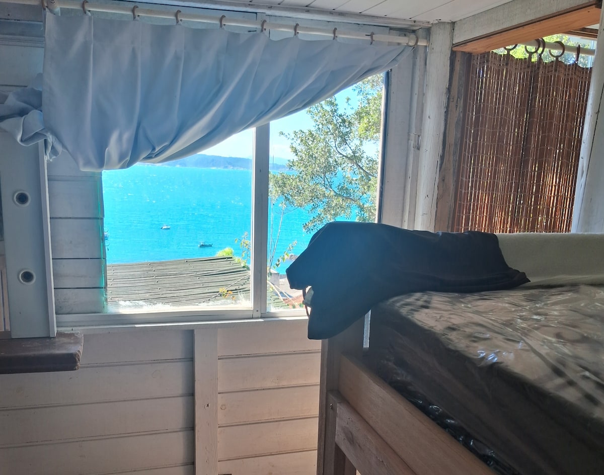 Pequena suíte estilo “cabana de madeira”. O quarto acomoda 2 pessoas, casal ou nao, pois tem uma cama auxiliar em cima. Área verde, ótima localizaçao na praia de Bombas, proximo à Prefeitura de Bombinhas, com mercadinho e padaria na esquina de casa. Ambiente familiar. Tem banheiro privativo (estreito) e uma área externa com uma cozinha compartilhada, que pode ser utilizada para refeições rapidas ou preparar um café. Tem padaria a ima quadra daqui