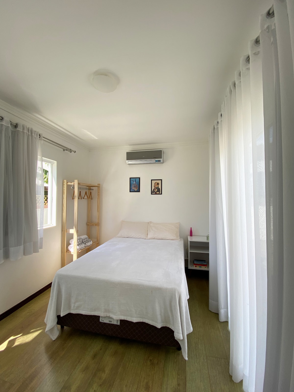 Casa de dois quarto, ( cada germinada) ideal para casal, ou 4 pessoas no máximo, localizada entre duas praias, para a esquerda a 5 minutos de caminhada da badalada Jurerê internacional e para a direita a tradicional praia do forte. A casa é ideal para casal ou para quem esta viajando a trabalho. alguns espaços são compartilhado, como as áreas externa, pátio com lugar para 1 carro e portão de entrada. Não aceitamos pets.