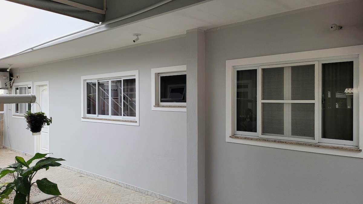 Espaço inteiro. Possui Ar condicionado, Com cozinha e banheiro individual. Quitinete pra você que vem de carro e quer aproveitar a praia podendo atender até 4 pessoas! Não tem churrasqueira e não tem máquina de lavar roupas. Proibido fazer qualquer tipo fogo ou fogueira na propriedade. Praia de Morrinhos 1km; Praia de Mariscal 2,5km; Praia de Canto Grande mar de fora 3km; Bombinhas tem 39 praias todas próximas uma das outras. Além das praias há muitos outros pontos turísticos