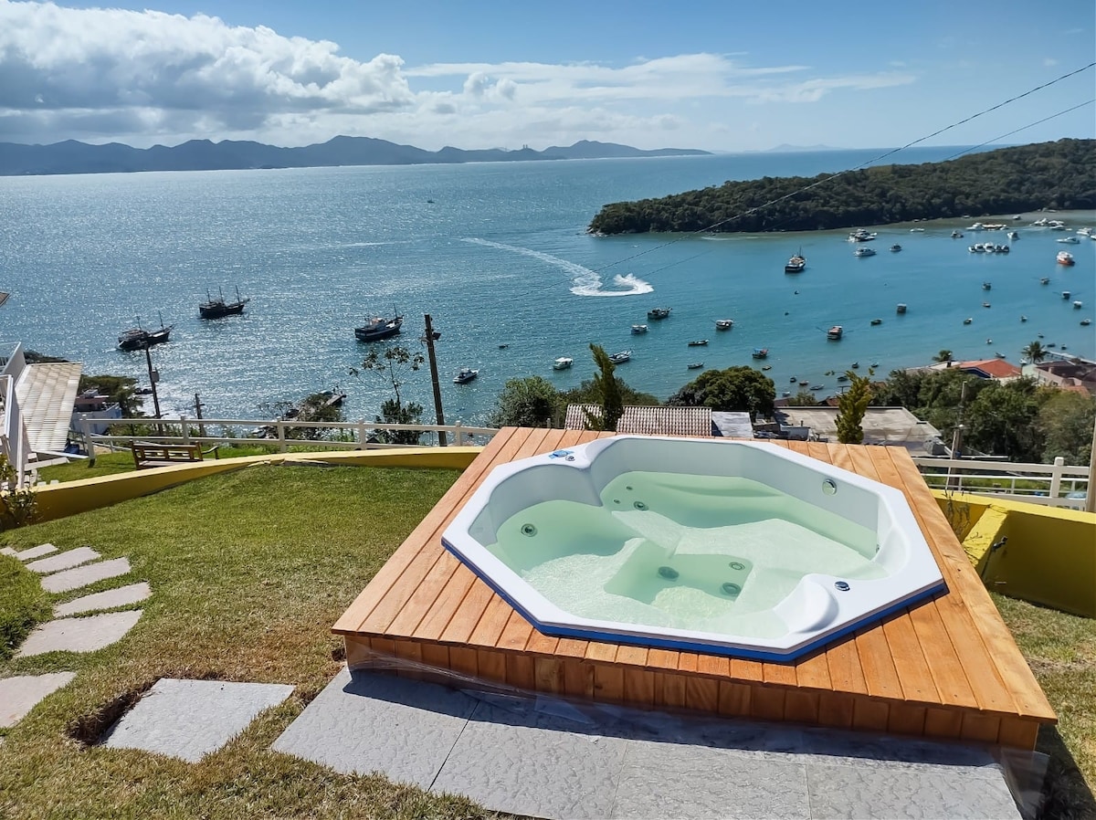 Apartamento com Jacuzzi privativa/aquecida e linda vista para o mar, jacuzzi e rede na sacada. Cozinha completa (fogão, geladeira, micro-ondas, cafeteira, torradeira e demais utensílios básicos) A propriedade tem um pátio amplo, churrasqueiras e piscina (compartilhadas). Uma vaga de estacionamento gratuito. Está localizada em uma região tranquila. Ficamos próximos das praias: Sepultura, Lagoinha e Retiro dos Padres (5min a pé). E ficamos cerca de 15min a pé do Centro de Bombinhas.