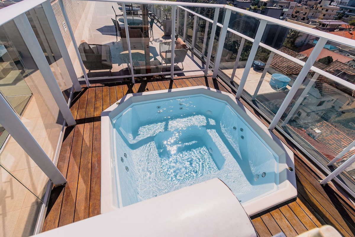 Welcome to the best penthouse in Bombinhas. Experience truly amazing moments while enjoying a breathtaking view!➢ Enjoy a large terrace with a Jacuzzi!➢ Get to the wonderful Bombinhas beach in less than 3 minutes➢ On the central avenue, close to everything!!➢ Count on a parking space available to you! (medium space)Did you like it? Add to your wishlist by clicking ❤ on the upper right-hand corner.
