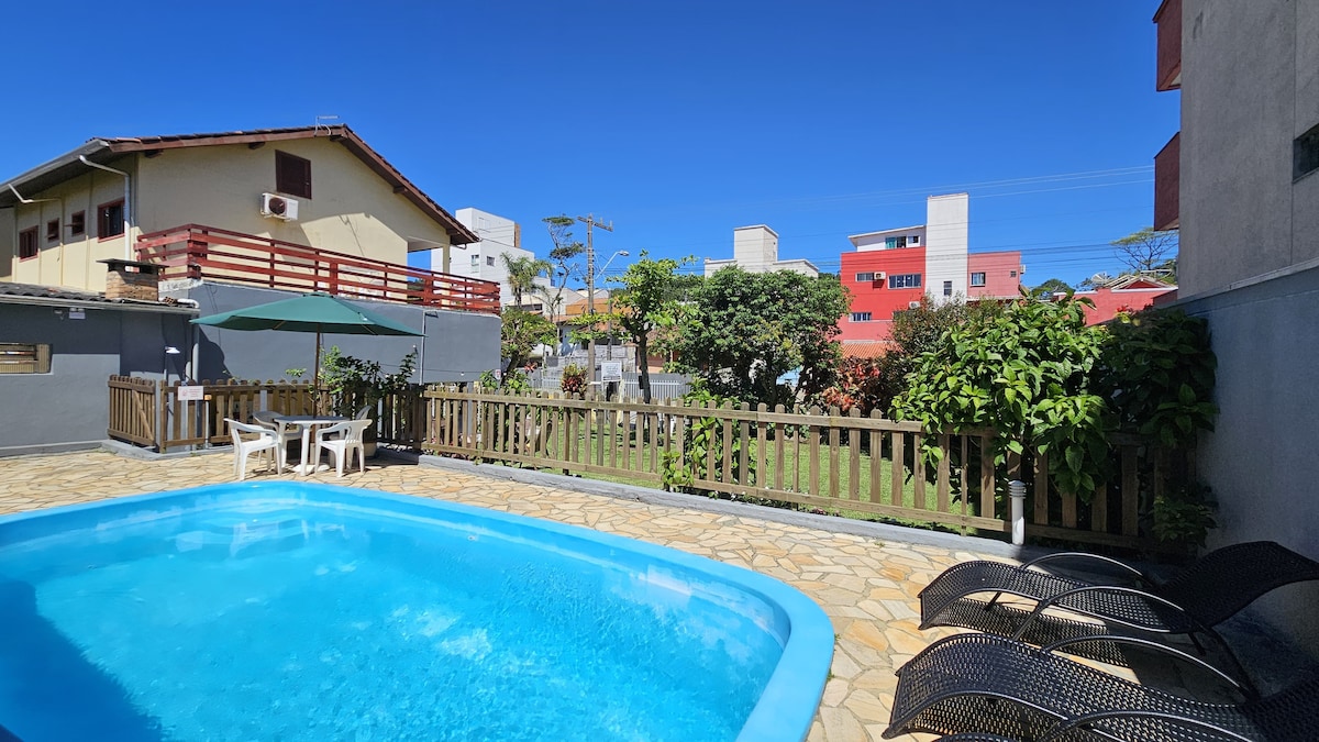 Nossa residencial está super bem localizado no centro da cidade, a 500 metros da praia de Bombinhas e 600 metros da praia de 4 Ilhas. Temos ampla área verde com redes, árvores e passarinhos cantando... Também temos espaço kids com casinha, piscina de bolinhas e brinquedos para receber bem nossos pequenos hóspedes. Além de uma deliciosa piscina e horta orgânica a disposição de vocês, assim como churrasqueiras portáteis e estacionamento. Aqui, seu pet não apenas é aceito, mas super bem recebido