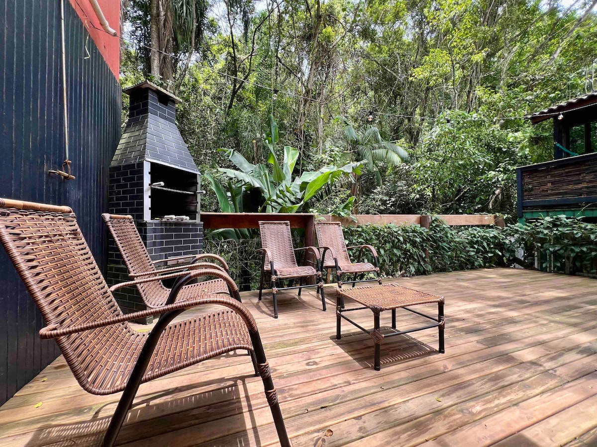 Experiência única para casais que buscam um refúgio privativo com uma interação total da natureza. A nossa casa é planejada com conceito ecológico sem abrir mão de todo conforto para você descansar e recarregar energias. Prepare-se para estar imerso na natureza do morro, com vista fenomenal para mata Atlântica e desfrute do silêncio em sintonia com os sons dos pássaros! Distando apenas 15 minutos da praia a pé e dos restaurantes e mercados.
