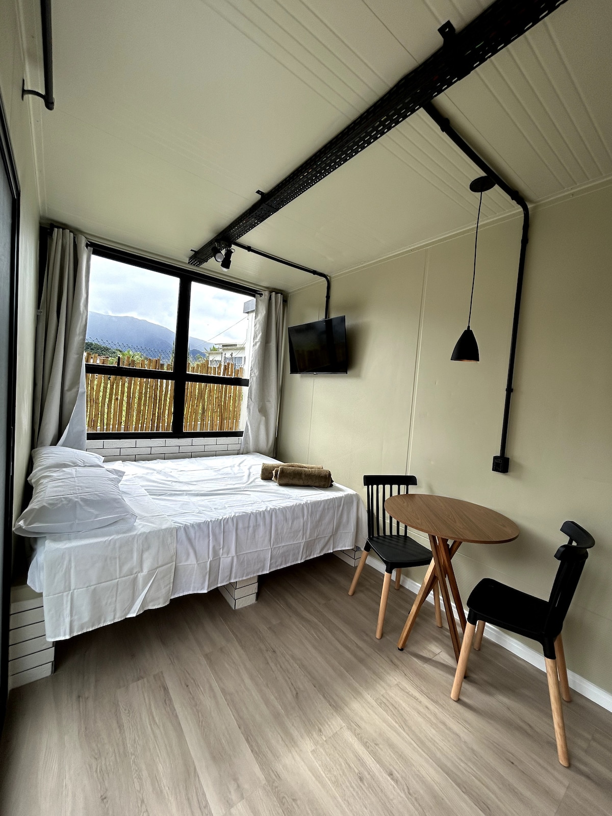 Complexo com 4 Chalés em Condomínio fechado. Local muito tranquilo em meio a natureza, portaria 24hs, segurança e tranquilidade.Tudo novinho! Composto por cama de casal, bi-cama solteiro, TV 32", Chromecast, ventilador, wi-fi, banheiro privativo, terraço, no 1º andar, balcão em mármore, Cozinha com Cooktop, geladeira, microondas utensílios de cozinha, água filtrada. Chalé Lindo com terraço e vista para natureza! Parquinho e piscinas "naturais" no condomínio . Anfitriões no local!