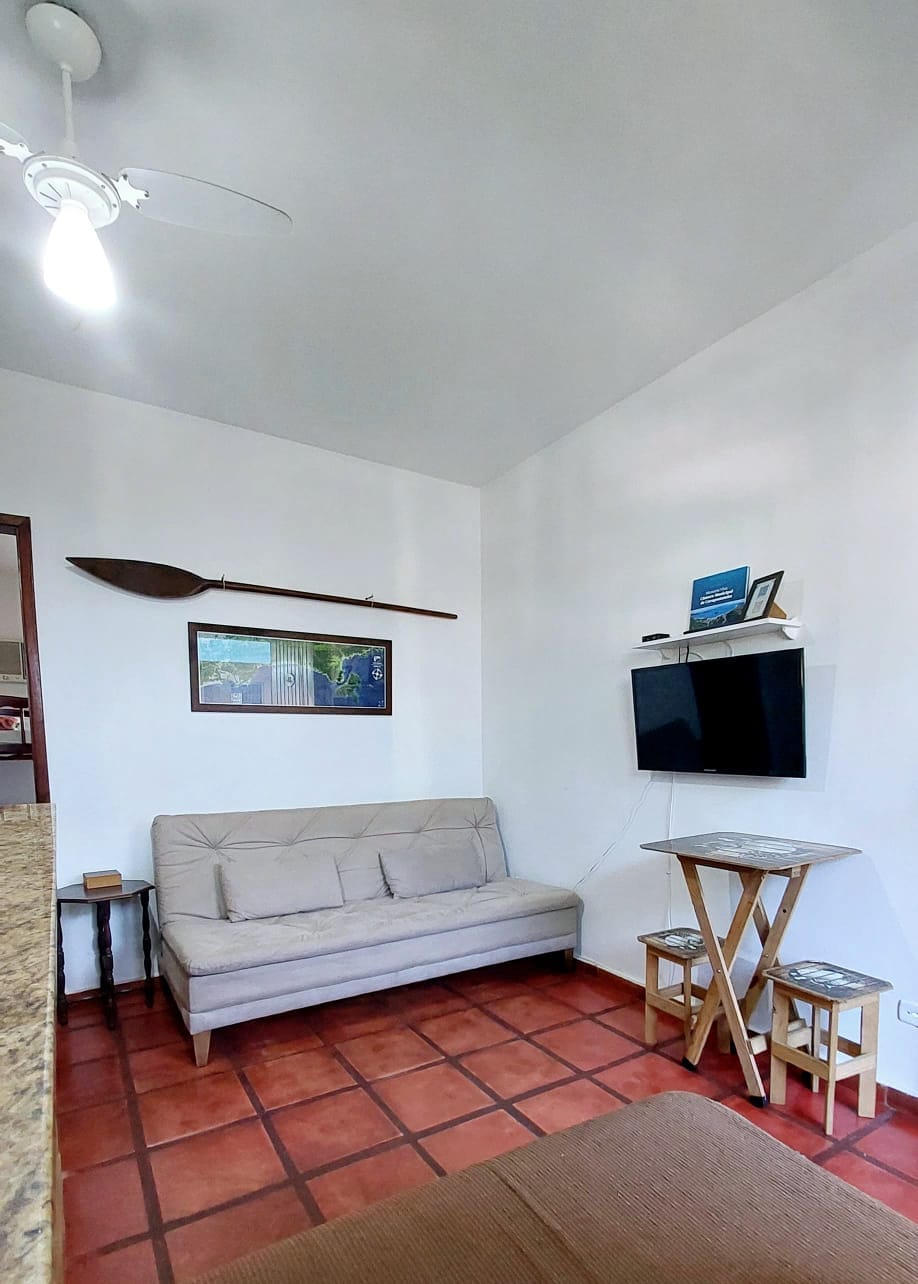 Minimalist style chalet, located on the first floor of a small gated community with a charming internal courtyard, pool, barbecue area, and a parking space in the internal parking lot with an automatic gate. Between Praia do Saco da Ribeira, Sununga, and Lázaro. Comfort and security for you! * 9,000 BTUs air conditioning in the bedroom and 12,000 BTUs in the living room.