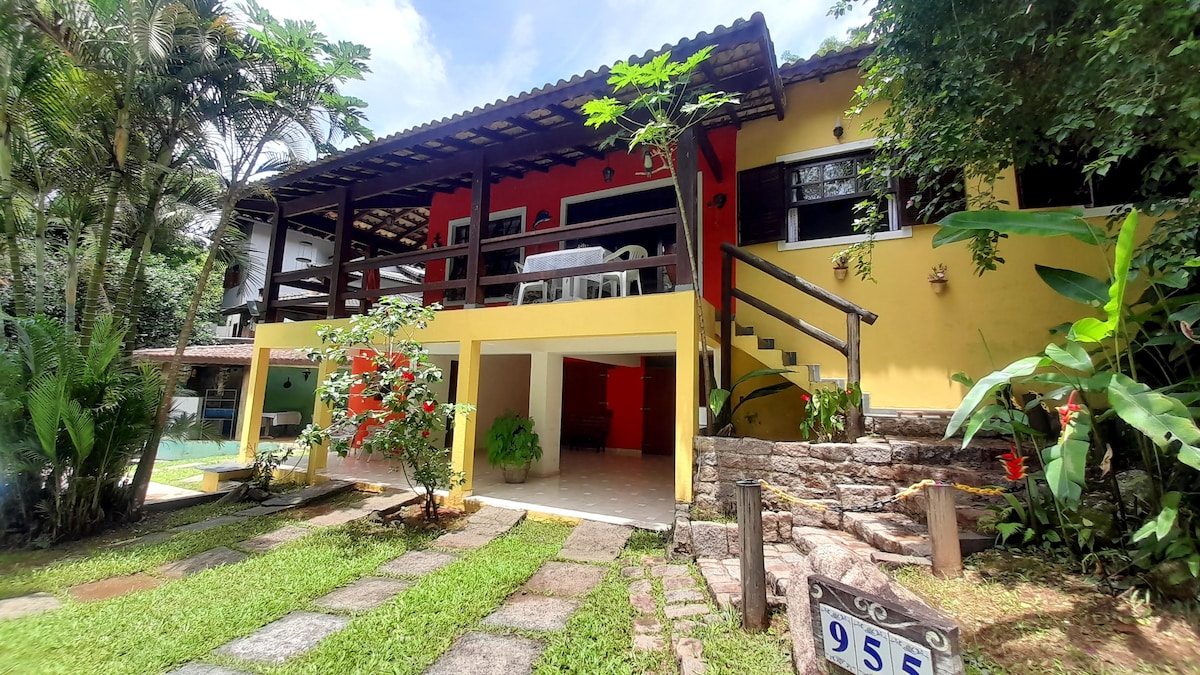 Lugar tranquilo com vista para montanhas e vista mais distante para o mar, varanda dos sonhos, casa com 3 suítes e 4 banheiros com cozinha americana... Fica a poucos metros da praia, lugar para família e sossego, lugar agradável a todos especialmente tranquilo para crianças, imóvel recém reformado isolado em rua particular espaço para 3 ou 4 carros, ducha externa, tv a cabo, Wi-fi, geladeira, micro-ondas 3 camas de casal mais 3 beliches lugar especial com descanso e diversão garantidos.