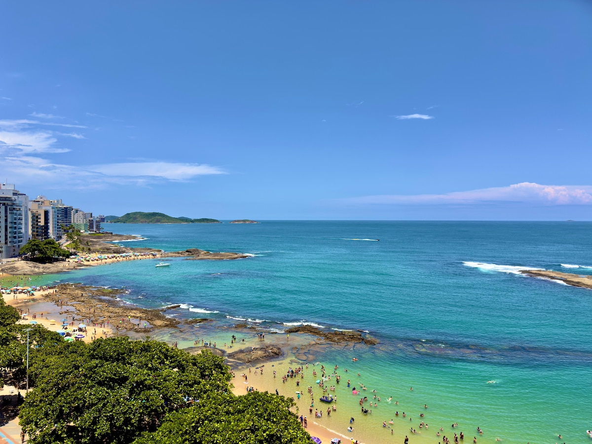 🚨LEIA TODO O ANÚNCIO COM ATENÇÃO ANTES DE RESERVAR. Sua compreensão é essencial para uma estadia incrível. ⛔NÃO FORNECEMOS ROUPAS DE CAMA E TOALHAS. Caso necessite, podemos indicar uma empresa parceira que fornece. Lindo apartamento, alto padrão, vista linda pro mar de Guarapari! Quarto e sala com cozinha integrada super equipada, e uma varanda com a VISTA + LINDA da cidade. 🤽🏻♂️piscina, 🎱sala de jogos 🛜Wi-fi , 🚘garagem coberta gratuita. 📍Melhor localização no centro de Guarapari!