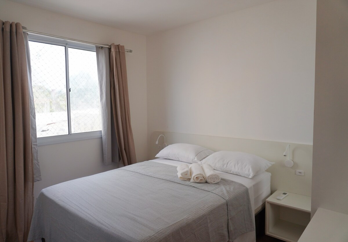Diferenciais que garantem sua comodidade: • Localizado no térreo, em condomínio fechado com portaria 24h, estacionamento interno gratuito e mercadinho interno. • Ideal para estadias curtas ou longas, com diversas comodidades em frente: academia, padaria, farmácia, salão de beleza e mais. • Inclui toalhas de rosto e banho, roupas de cama e cobertores para o seu conforto. • Acesso fácil e seguro com fechadura digital e senha exclusiva. • Projetado para acomodar até 4 pessoas confortavelmente.
