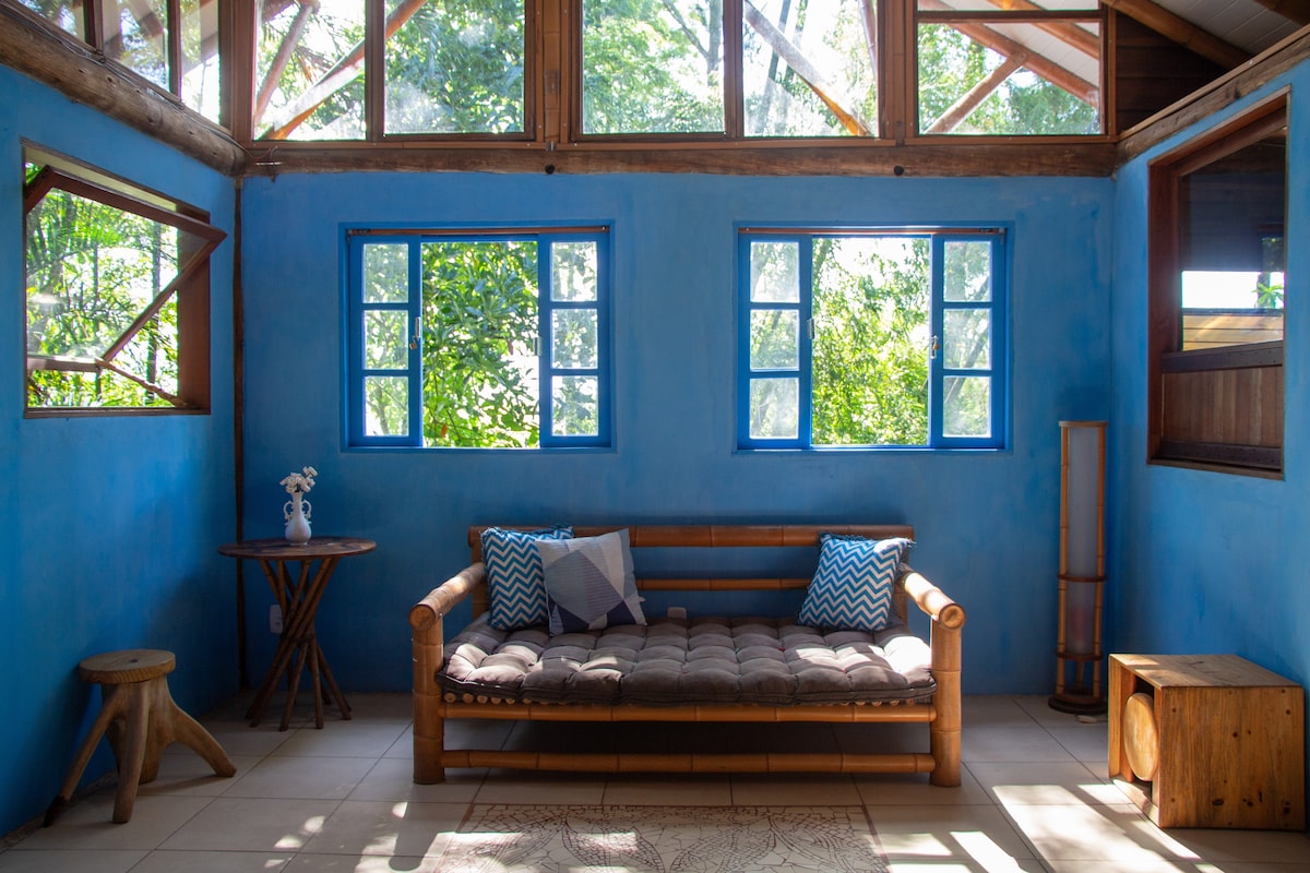 A casa encontra-se em Florianópolis, em um dos lugares mais bonito do sul da Ilha. Em frente à praia e na melhor parte de toda a extensão, a Casa Janela Azul está a poucos metros da Ponta das Campanhas e da Praia do Matadeiro. O clima de pequena vila ainda cerca a Praia da Armação, localizada a 25 km do centro de Florianópolis.