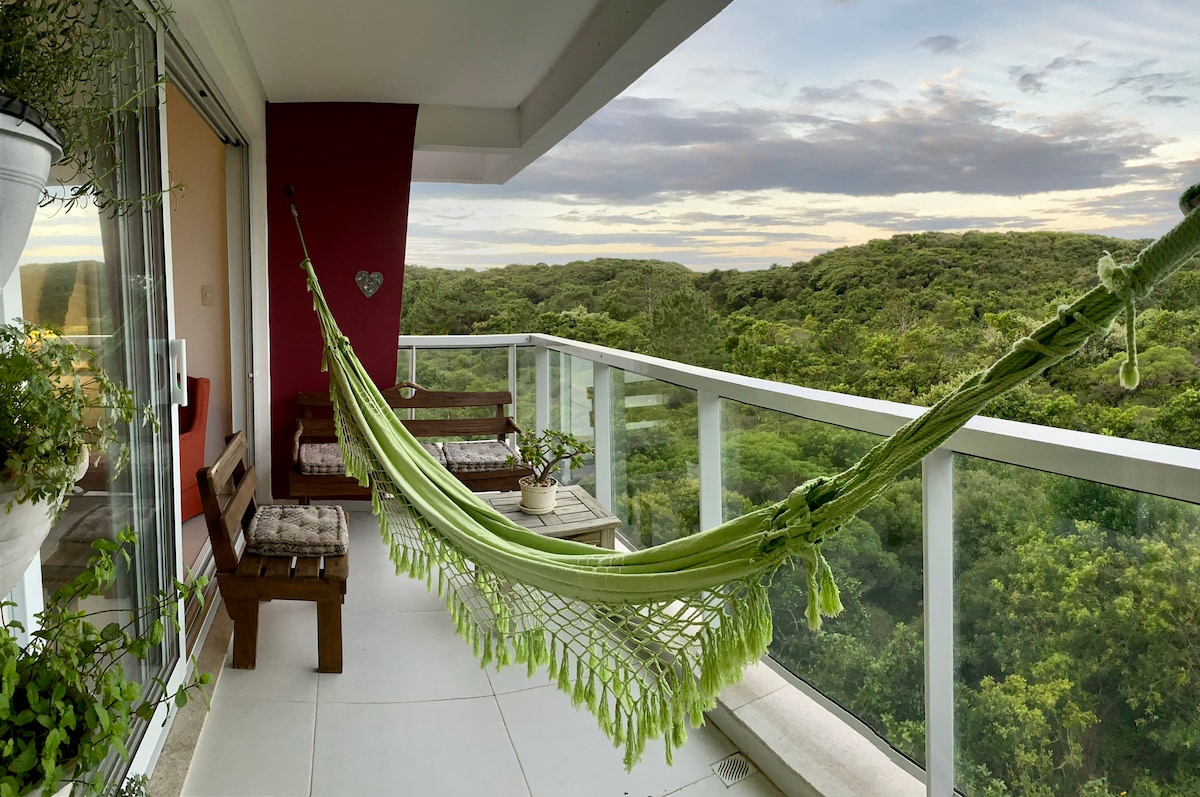 Luxury penthouse with total privacy, ocean view, jacuzzi, barbecue and large outdoor terrace in front of Campeche beach, one of the most beautiful beaches in Florianópolis! Spending your vacation at the Thai Beach Home Spa condo is like being at a 5 star resort! With a heated indoor pool, outdoor infinity pool, indoor and outdoor jacuzzis, gym, playground, an incredible common area! Central location near restaurants, bakeries, supermarkets and shops.