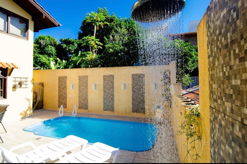 Casa charmosa com excelente localização no coração do Campeche, frente mar (pé na areia). A casa é perfeita para famílias ou amigos que buscam facilidade e conforto próximo ao mar. Projeto totalmente pensado para o Airbnb. A casa possui ar condicionado split nos quartos, móveis novos, eletrodomésticos, churrasqueira, piscina, varanda com deck, mesa de sinuca, mesa de pingue-pongue e garagem.