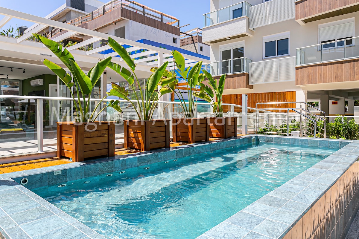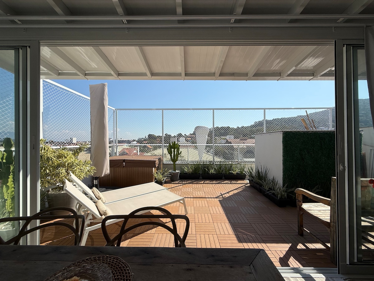 Luxury penthouse with total privacy, ocean view, jacuzzi, barbecue and large outdoor terrace in front of Campeche beach, one of the most beautiful beaches in Florianópolis! Spending your vacation at the Thai Beach Home Spa condo is like being at a 5 star resort! With a heated indoor pool, outdoor infinity pool, indoor and outdoor jacuzzis, gym, playground, an incredible common area! Central location near restaurants, bakeries, supermarkets and shops.