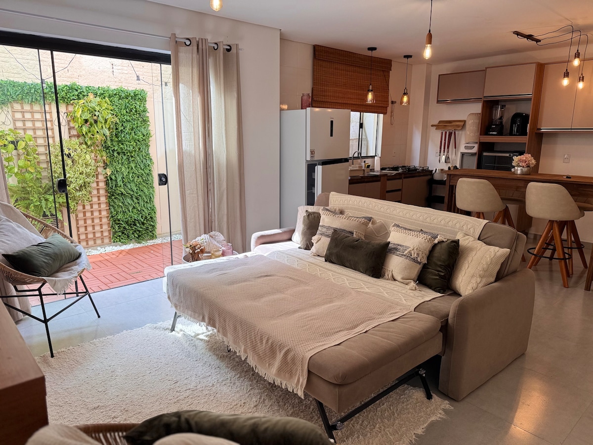 平均评分 5 分(满分 5 分),共 40 条评价Chalé Hortênsia - 舒适,距离海滩5分钟。