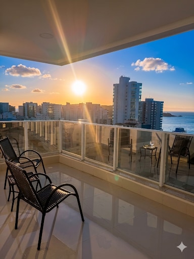 O Refúgio Perfeito com Vista para o Mar em Guarapari Imagine acordar com a brisa do oceano e estar a apenas 3 minutos de caminhada da areia da Praia do Morro. Localizado em andar alto, nosso apartamento une o conforto de um lar moderno com a praticidade de estar perto de tudo o que você precisa para férias inesquecíveis.