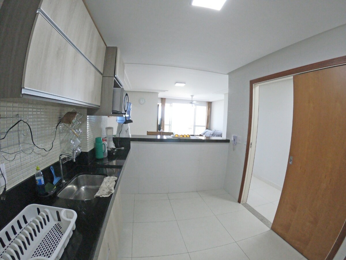 🚨LEIA TODO O ANÚNCIO COM ATENÇÃO ANTES DE RESERVAR. Sua compreensão é essencial para uma estadia incrível. ✨2qts NOVÍSSIMO na PRAIA DO MORRO✨ ❄️ AR nos Quartos 🚘1 vaga de garagem gratuita (nao acomoda caminhonetes grandes) 🛜 Wifi Super Rápido 👶🏼Berço Portátil 🛎️Portaria virtual 24h (se estiver a pé, é necessário se identificar a cada acesso) 🧑🧑🧒O espaço acomoda 5 pessoas em camas e 1 no sofá retrátil da sala. Para estadias mais longas não é recomendado para 6 pessoas.
