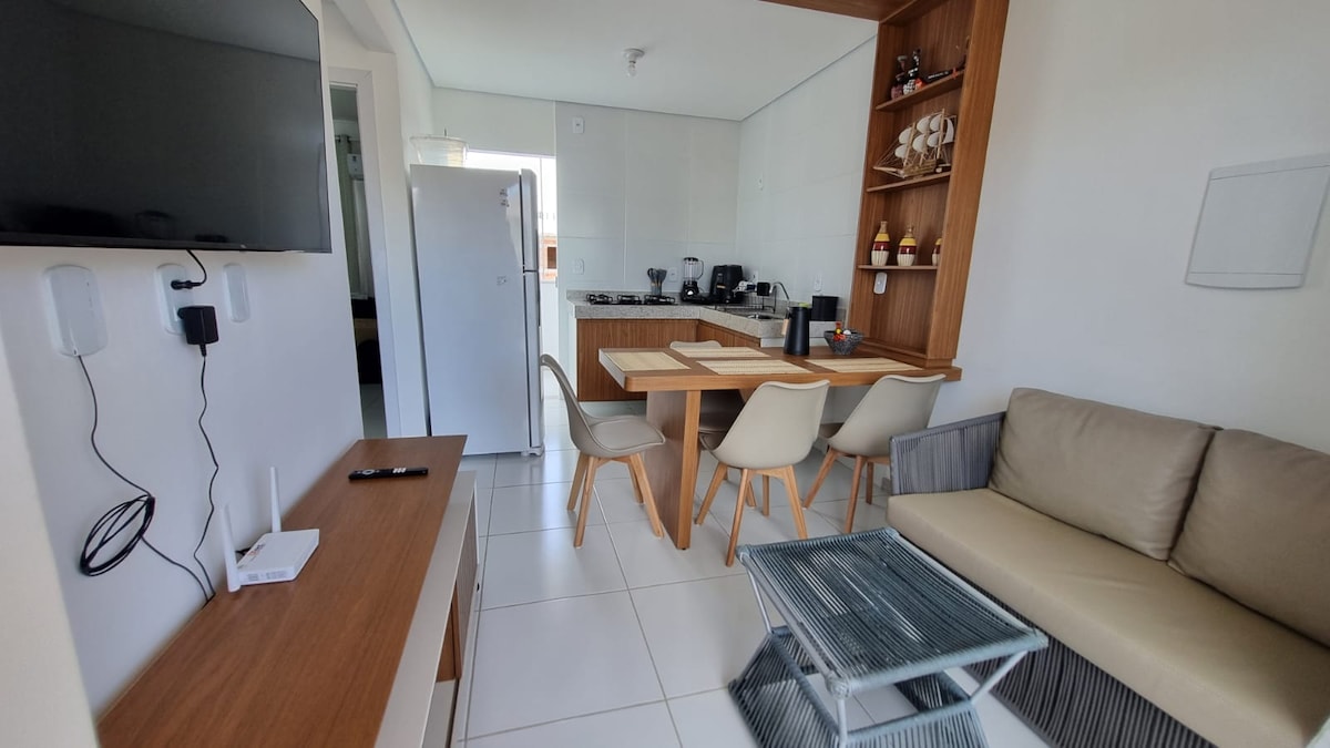 Your perfect stay in Bahia with comfort and convenience! This apartment in Porto Seguro offers an air-conditioned environment, ensuring maximum well-being. Relax in the condominium's pool or use the barbecue grill for socializing. You will be just 220 meters from the beach! The unit is complete with a Smart TV in the living room and bedroom and a well-equipped kitchen for total autonomy. Don't waste time and book your air-conditioned apartment steps from the beach now!