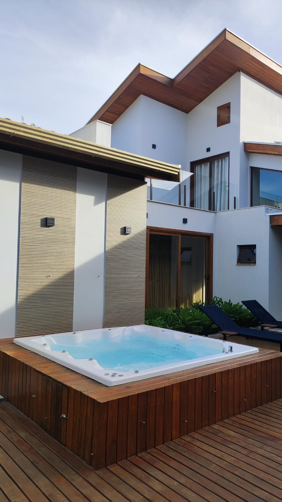 Casa nova finamente decorada , privativa , integrada a natureza , em condomínio seguro , próximo ao Ecoparque. Localizada Estrada da balsa 100 M da SERVIDÃO mar.Possui 4 quartos ( 3 suítes primeiro andar e quarto no térreo) todos com ar , Smart TV , guarda roupas , mesa e cadeira para estudos e amplos banheiros. Cozinha completa com cervejeira e geladeira extra grande Brastemp. Sala com Smart Tv 65" com ar. Área gourmet grande privativa com OFURÔ e churrasqueira. Roupa de cama (percal) e BANHO.