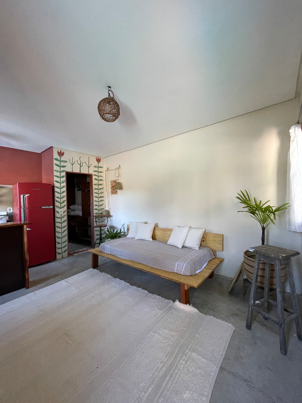 Aconchegante apartamento completo para 2/4 hospedes, em lindo e tranquilo condomínio fechado. Muito bem localizado no centro do Arraial d'Ajuda bem próximo a vários tipos de comércios e a charmosa rua do Mucugê (5 min a pé ), e possível deixar o carro no estacionamento e sair andando tanto durante o dia que a noite também. O condomínio e construído sobre uma área em desnível por tanto tem uma escadaria ao longo do caminho que leva até o apto. Insta @VilaZion