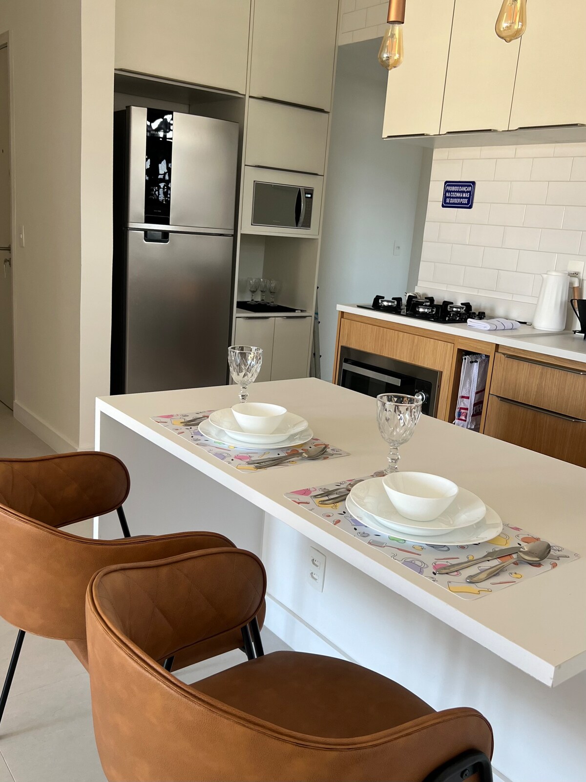 Amplo sala e quarto varanda, decorado, totalmente equipado Internet fibra optica alta velocidade, Wi-Fi, 2 smart tv's. na sala 55" no quarto 46", sala com ventilador de teto sofá cama, quarto cama de casal, ar condicionado split, agradavel escritorio impressora, cozinha americana geladeira,fogão, micro ondas, torradeira, liquidificador, máquina Nespresso, utensílios,secador de cabelos,máquina de lavar roupas,ferro e tabua de passar roupas,charmosa varanda com vista lateral da praia e piscina.