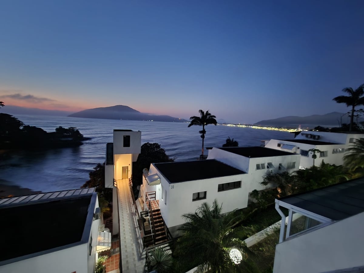 Apartamento novo/reformado, com vista incrível para o mar na melhor localização de Ubatuba. Perto de tudo e ao mesmo tempo em meio a natureza. 1 quarto com cama de casal e vista para o mar Sala integrada com a cozinha Piscina no condomínio. Ar condicionado Wi-fi rápido de 200mb Vaga de garagem Portaria 24h Fica na Prainha do Matarazzo e a 5 minutos da Praia do Perequê-Açu. Moderno e com uma vista paradisíaca. Por estarmos próximos ao Café de La Musique, pode ter barulho nos finais de semana.