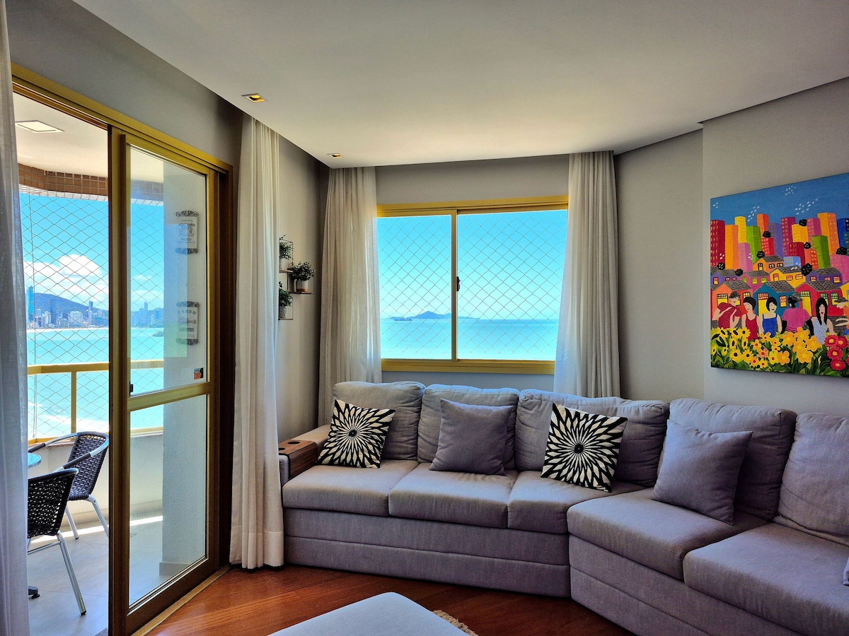 Apartamento finamente mobiliado na melhor localização de Meia Praia (Itapema), esquina com a Rua 255. Um refúgio sofisticado à beira-mar, ideal para quem valoriza conforto, elegância e praticidade. • Frente mar com vista deslumbrante • Cozinha completa com churrasqueira a carvão, grelha, espetos e utensílios • Internet Wi-Fi • 3 suítes amplas com camas queen size • TV e climatizador em todos os cômodos • 1 vaga privativa no prédio – medida: 9m x 2,35m