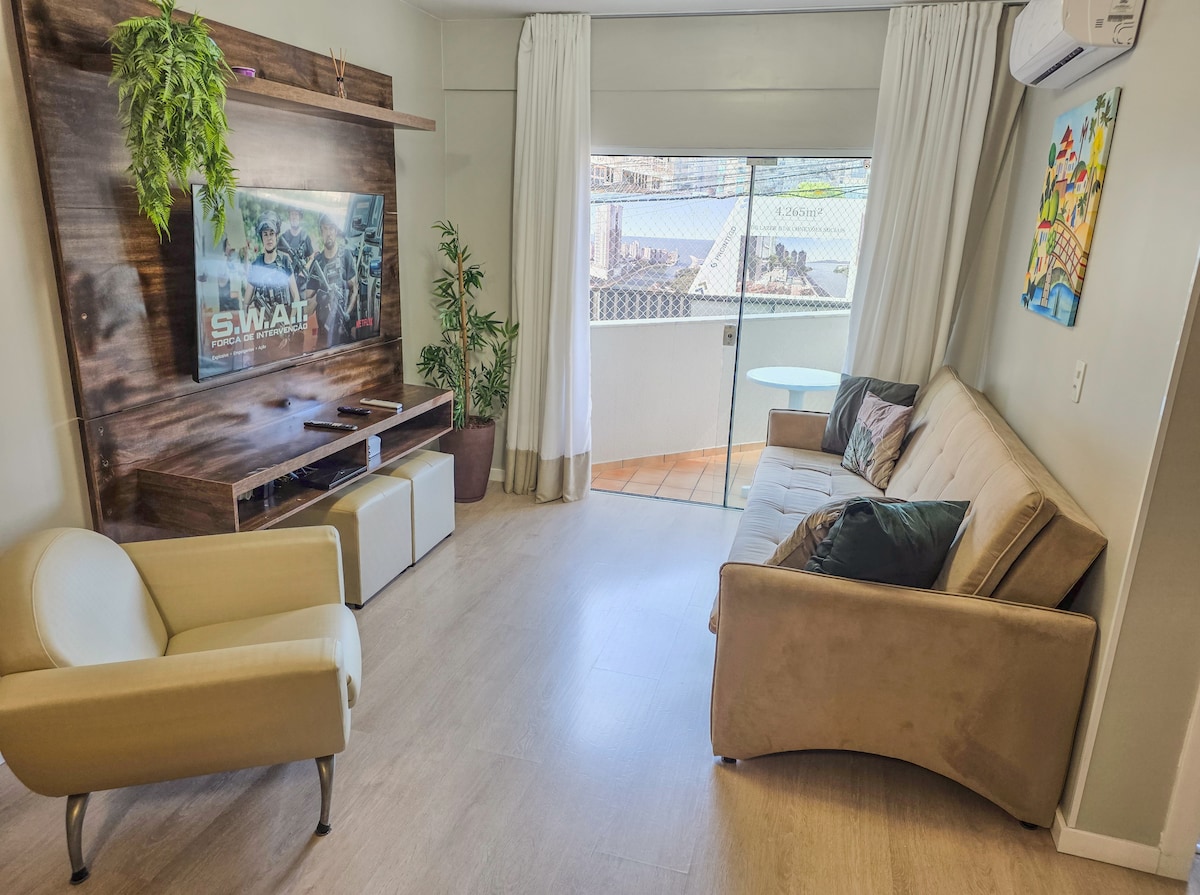 Apartamento à 3 min da praia, super novo com mobília completa. Conta com todos utensílios, incluindo toalhas e edredom de altíssimo padrão. Uma cama de casal queen e mais um sofá cama que comporta mais 2 adultos e mais uma criança (ideal para família) O que compõe ~ Academia ~ Água Quente ~ Elevador serviço (1) ~ Elevador Social (3) ~ Espaço Gourmet ~ Gás Central Hall de entrada mobiliado ~ Piscina Adulto ~ Piscina AQUECIDA ~ Playground ~ Portão Eletrônico ~ Sala de Jogos