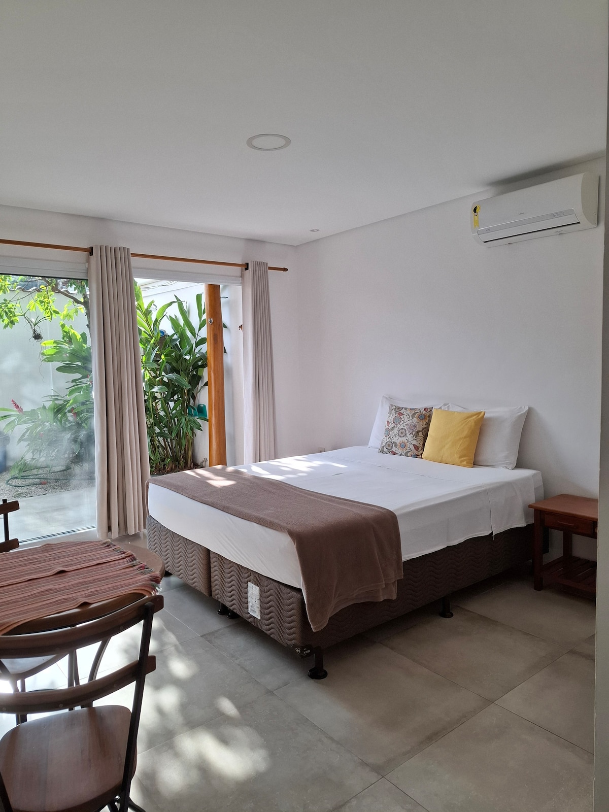 Se conecte ao descanso neste lugar tranquilo e bem-localizado. A Casa Sol, é um deleite! Linda, arejada, amorosamente planejada nos mínimos detalhes. A suíte, espaçosa e arejada, conta com uma cama king e outra de solteiro. O banheiro completo é espaçoso e confortável. A sala, com varanda com rede, voltada para o jardim e piscina, se conecta à cozinha e um lavabo maravilhoso. É tão charmosa nossa Casa Sol, que até em dias de chuva ela é queridinha dos hóspedes!
